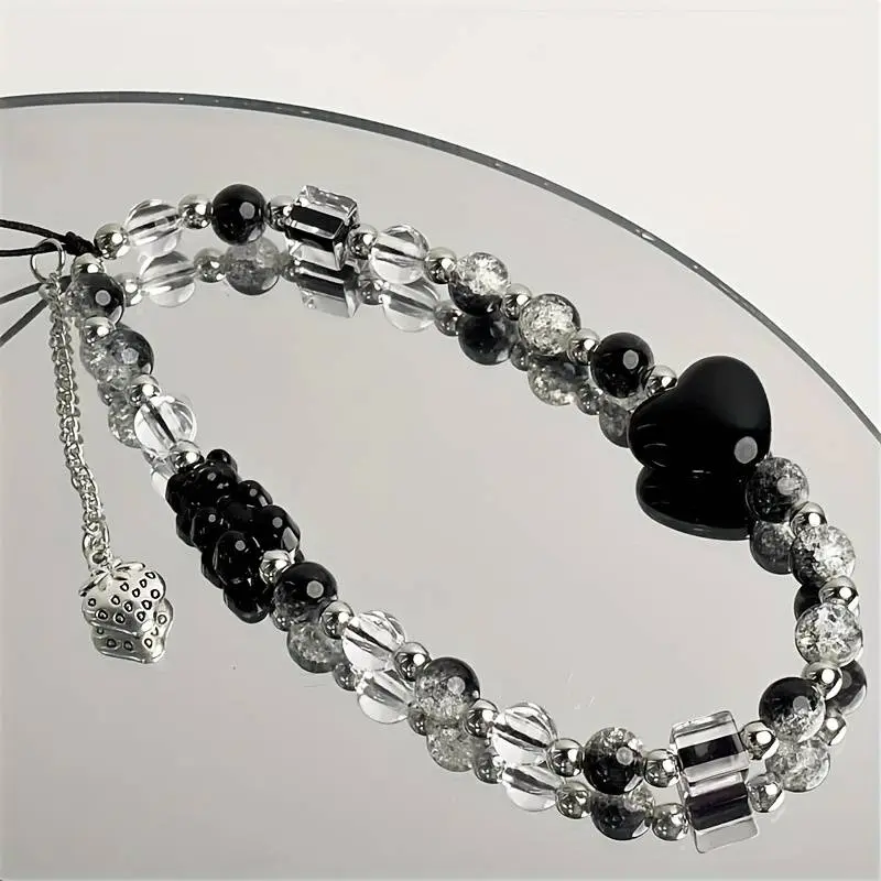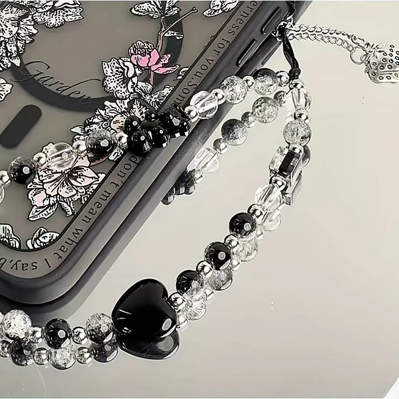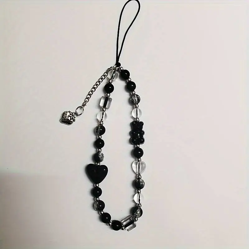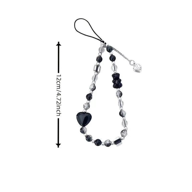 Black Strawberry Bear Love Phone Chain Charm Wrist Strap Keycord Cellphone Lanyard Girl Keychain Mobile Phone Case Hanging Chain