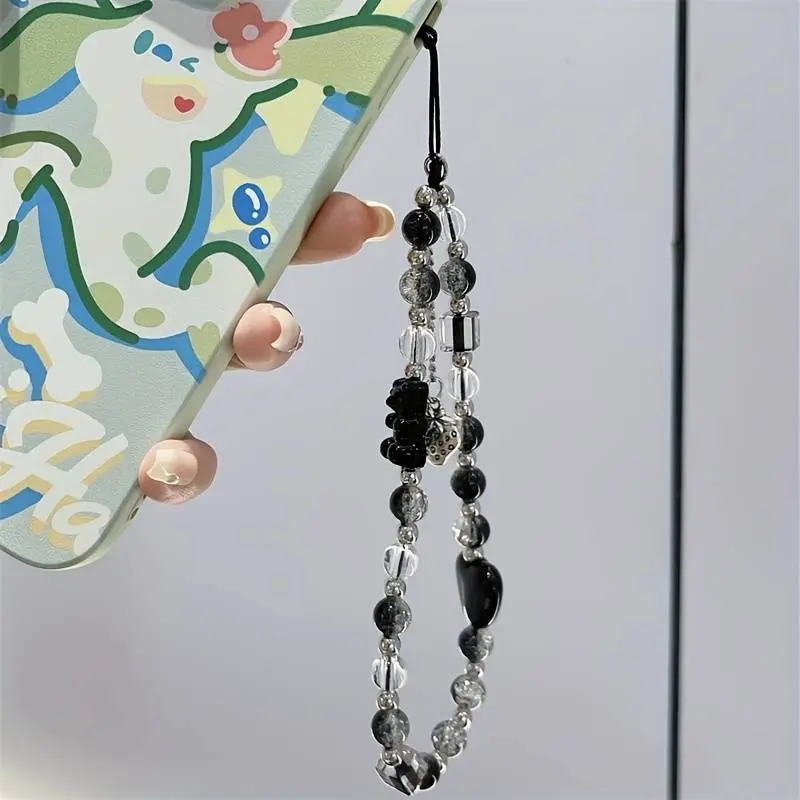 5. Black Strawberry Bear Love Phone Chain Charm Wrist Strap Keycord Cellphone Lanyard Girl Keychain Mobile Phone Case Hanging Chain