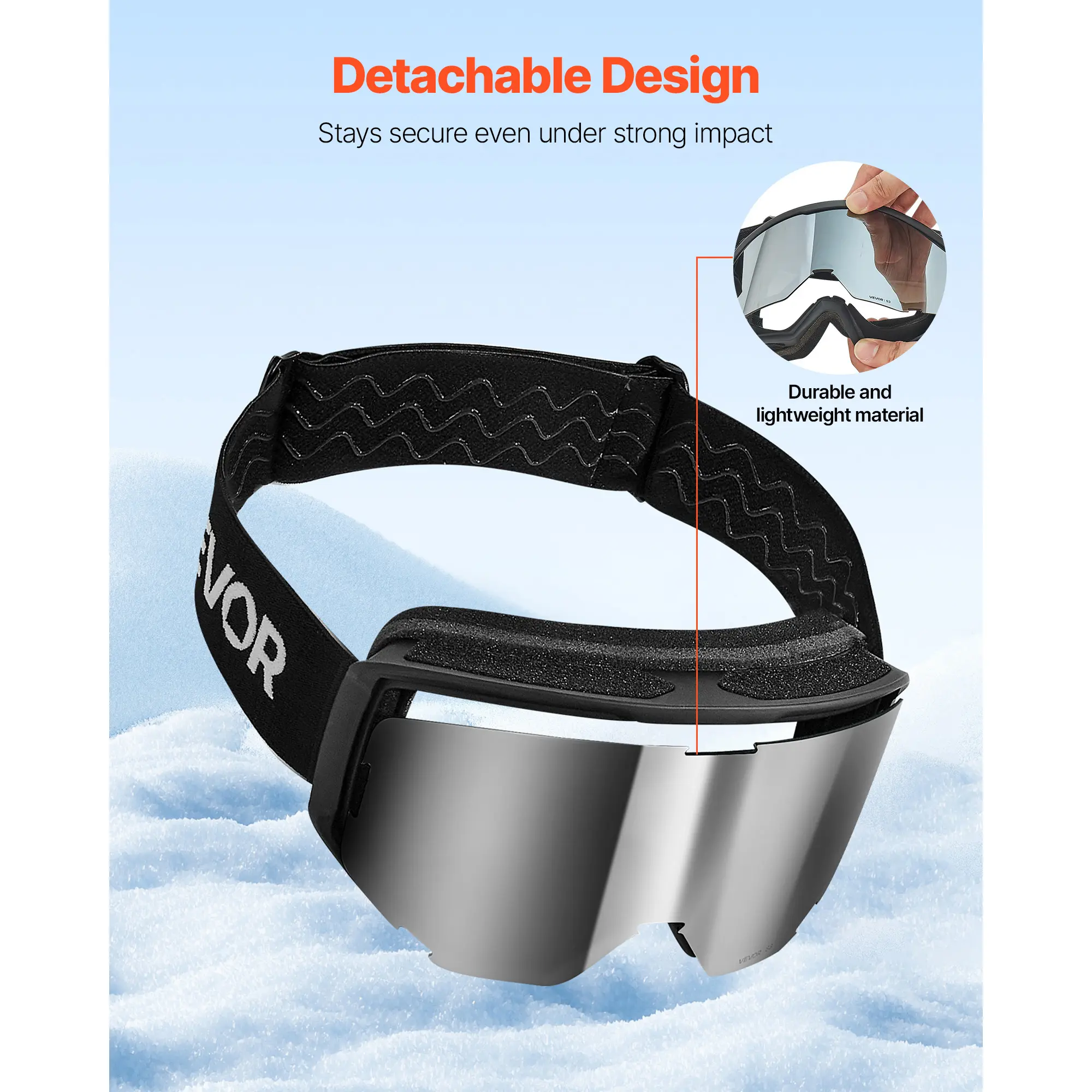 • Durable Detachable Lens: The TPU frame of our anti-fog snow goggles is light yet tough. The detachable lens design keeps angles precise and swaps easy, delivering lasting performance on the slopes