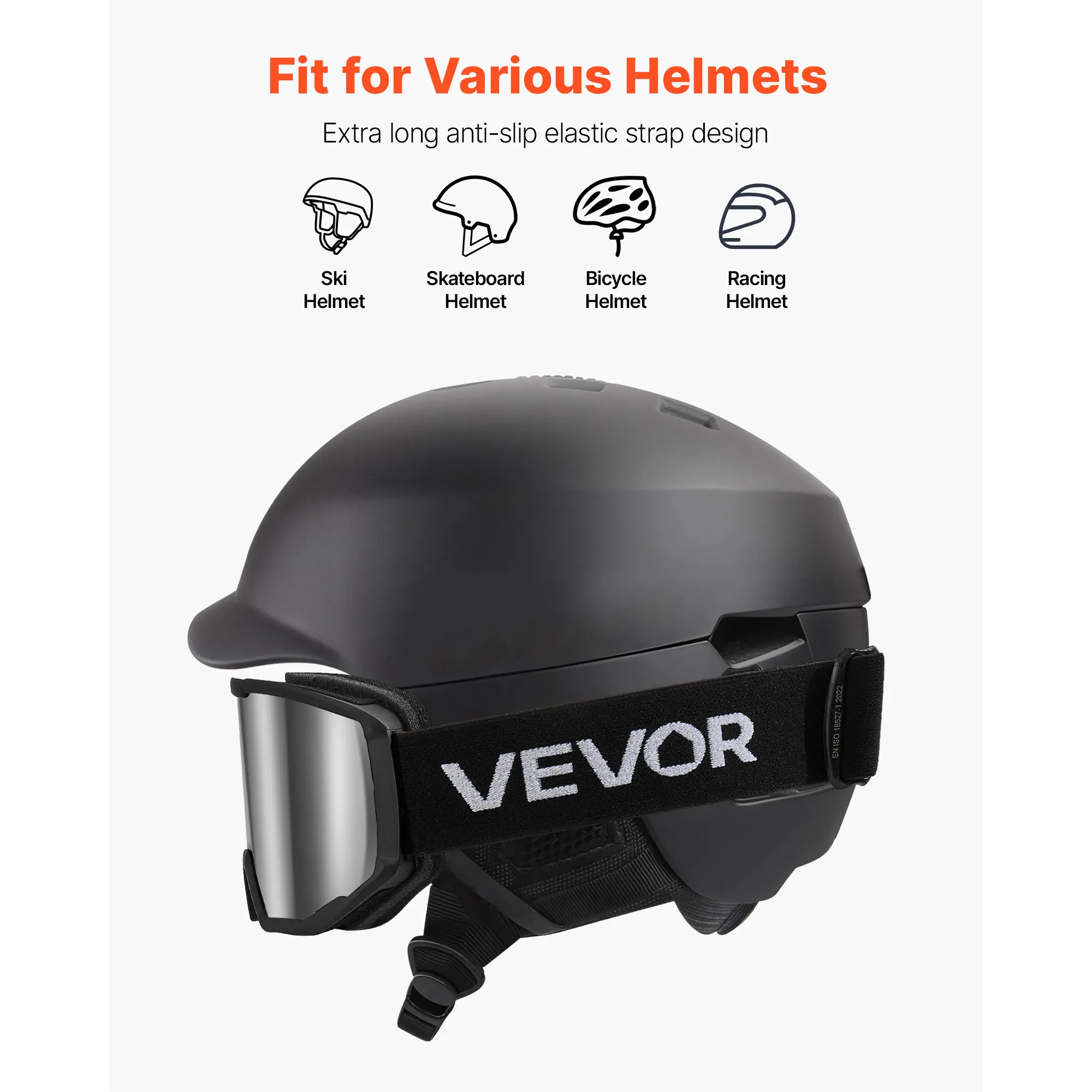 • Helmet-compatible Strap: The extra-long, non-slip elastic strap adjusts easily to fit any helmet.Wide anti-slip bands of the skiing goggles hold firm even during intense rides, keeping vision steady