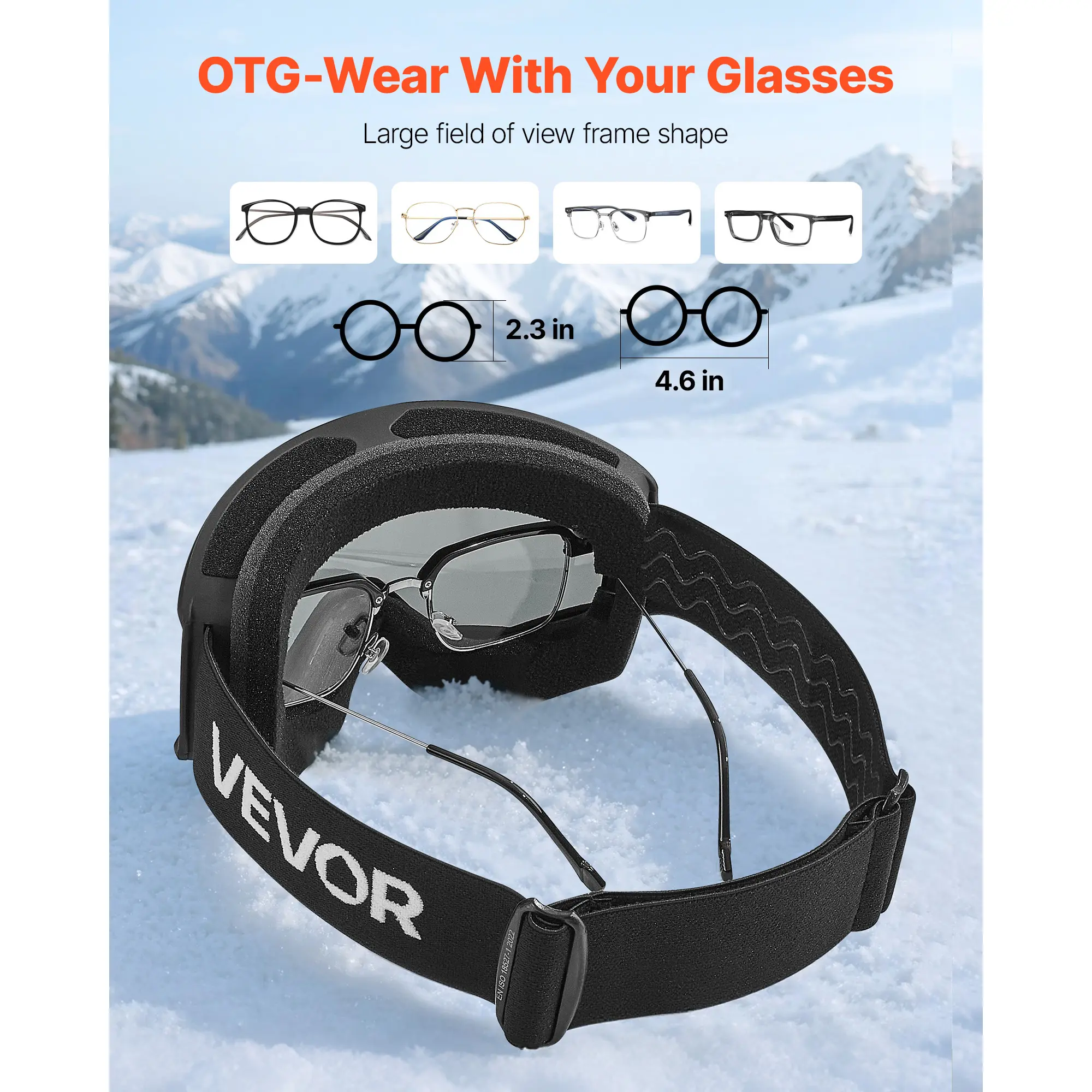 • OTG Frame Design: The wide-frame snow goggles fit most glasses up to 4.6 x 2.3 in without pressure.They stay snug without shifting, giving you a wide, unobstructed view all day