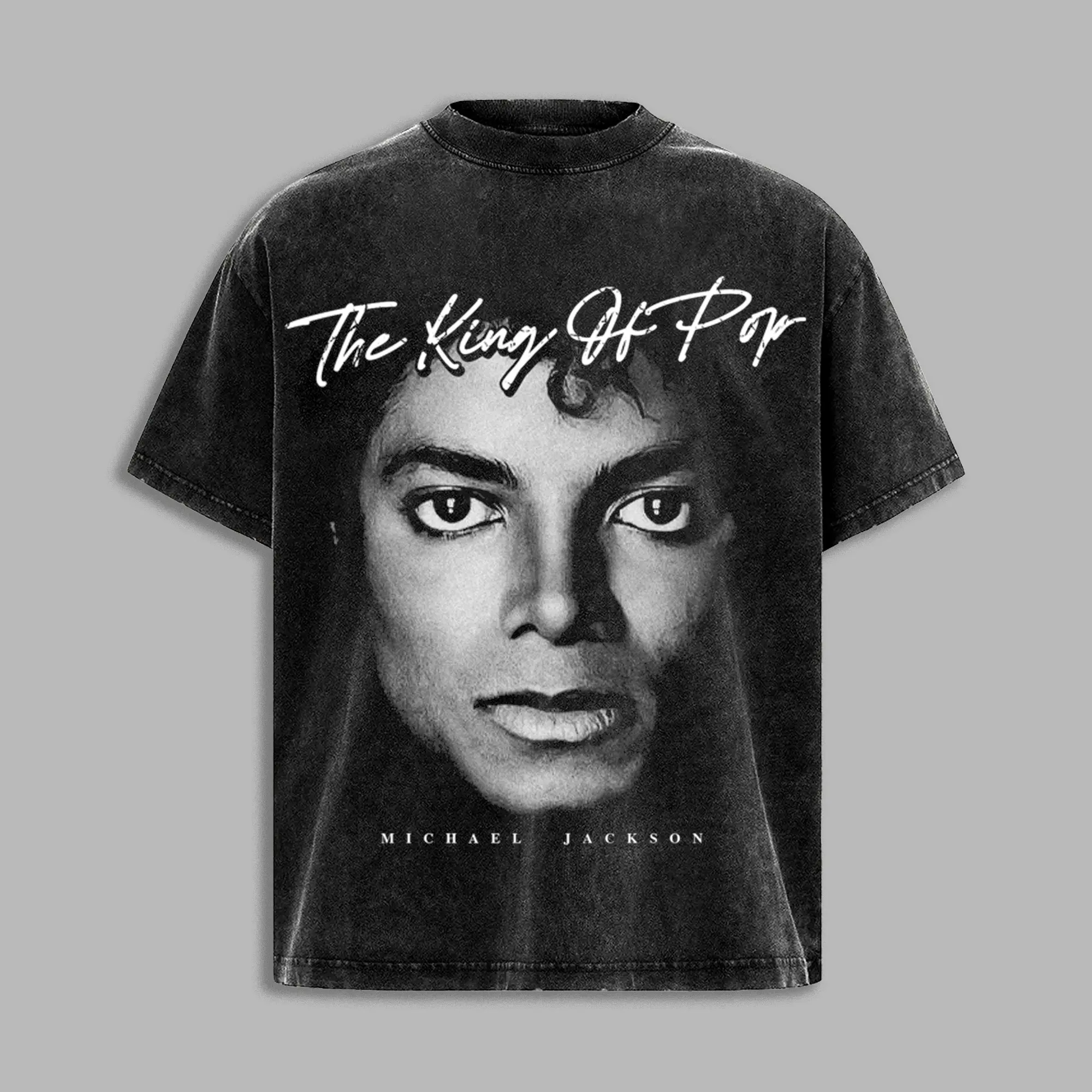 Michael Jackson King of Pop Vintage Wash T-Shirt – Retro Graphic Tee, michaeljackson, kingofpop, mj, y2kfashion, retrostyle, oversizedtee, popculture, ootd, trending, fashiontiktok