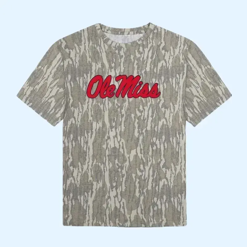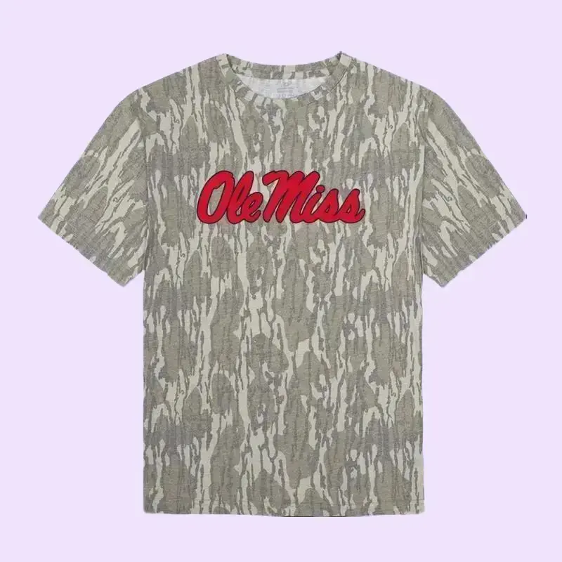 {Full Size S-5XL} Hot Trend Ole Miss Mossy Oak Camo T-Shirt 3D Collegiate Spirit Graphic Tee Unisex Tailgate Shirt Hunting Outdoor Streetwear Casual Top Breathable Lightweight Cotton Timber Days Style TikTok Shop US Outfit