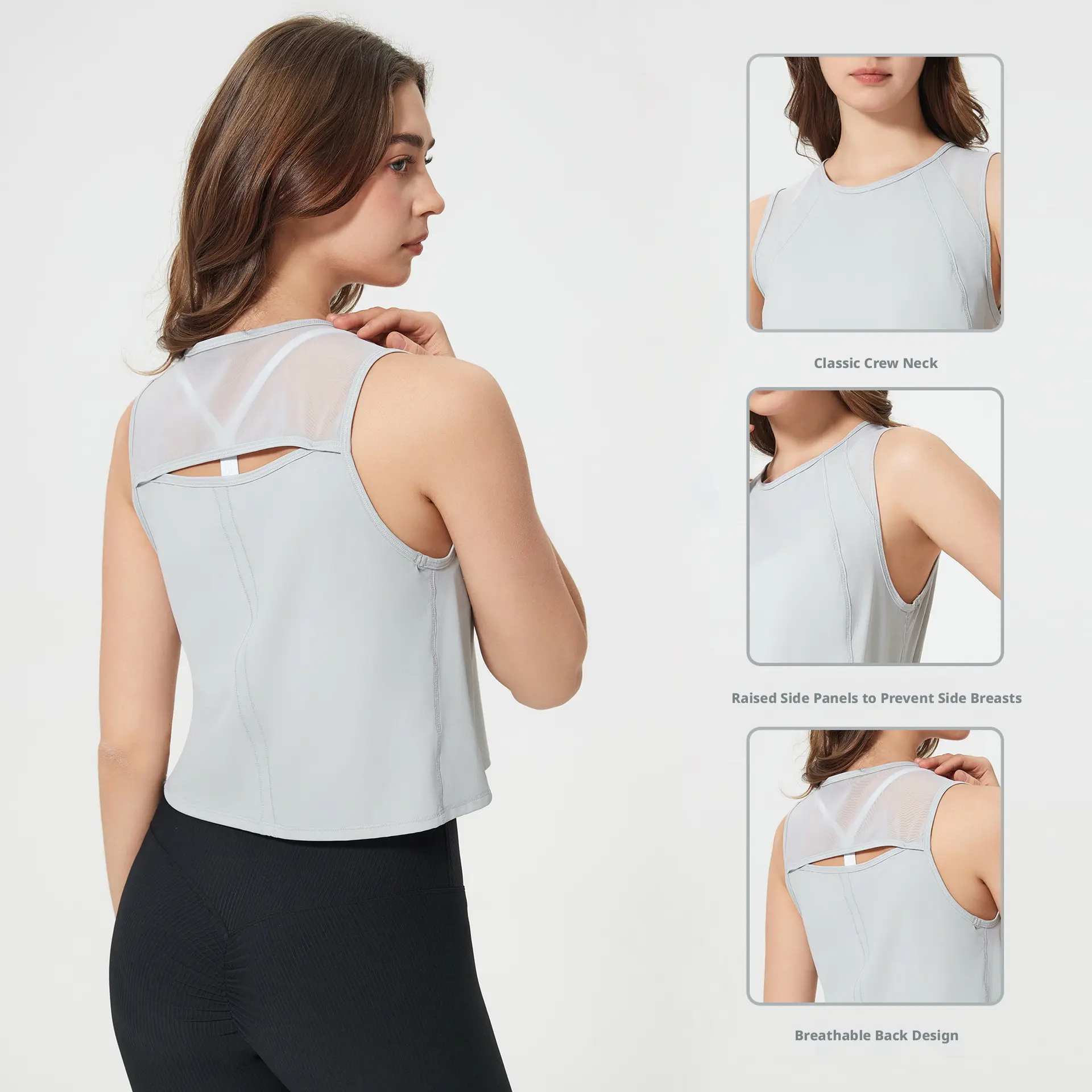 New Sleeveless Crop Tank Top, Sexy Hollow Out Design, Quick-Dry Breathable Yoga & Sports Casual Wear