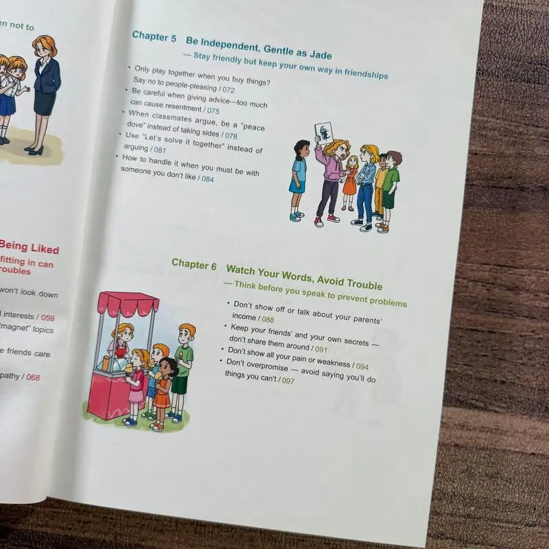 "Raise Kids Street-Smart" is a book designed to light a lamp of wisdom for children, supporting their growth in wisdom and helping them become responsible for themselves, reassuring to their parents, and useful to society. Through 110 vivid, true-to-life scenes, it delicately portrays situations children are very likely to encounter in their everyday school and home life: from minor friction in schoolyard friendships to serious issues such as exclusion and bullying; from the hidden hurdles along the path of growing up to split-second responses when facing danger. Each scenario is rooted in children's real lives, enabling them to feel strong resonance as they read and to gain insight through that resonance.