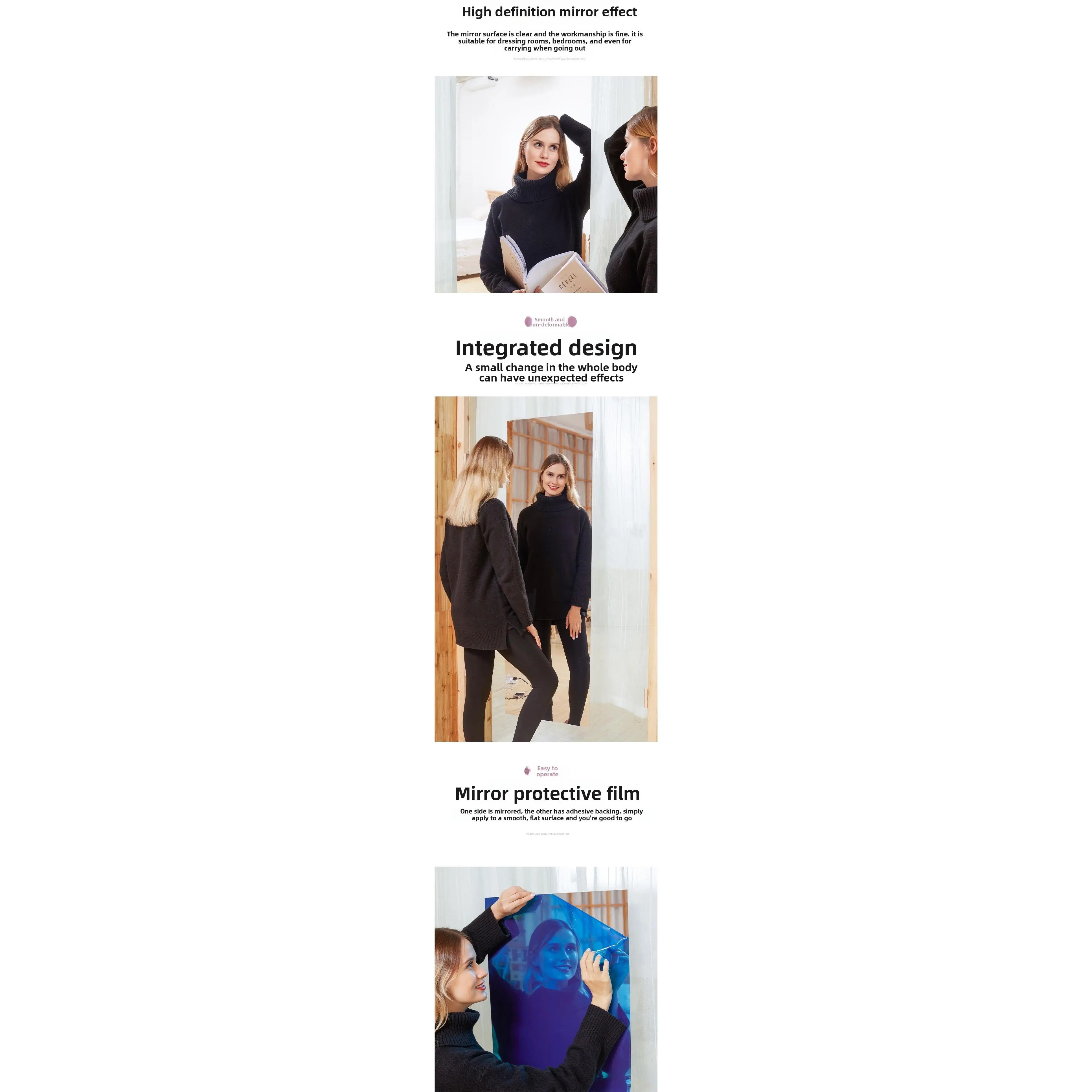 Self-Adhesive Soft Mirror Wall Sticker HD Mirror Surface Paper, Full Length Dress Mirror for Bedroom, Safe Explosion-Proof Mirror Film, Punch-Free Home Wall Decor Mirror Sticker, Cuttable and Easy to Use girl room accessories