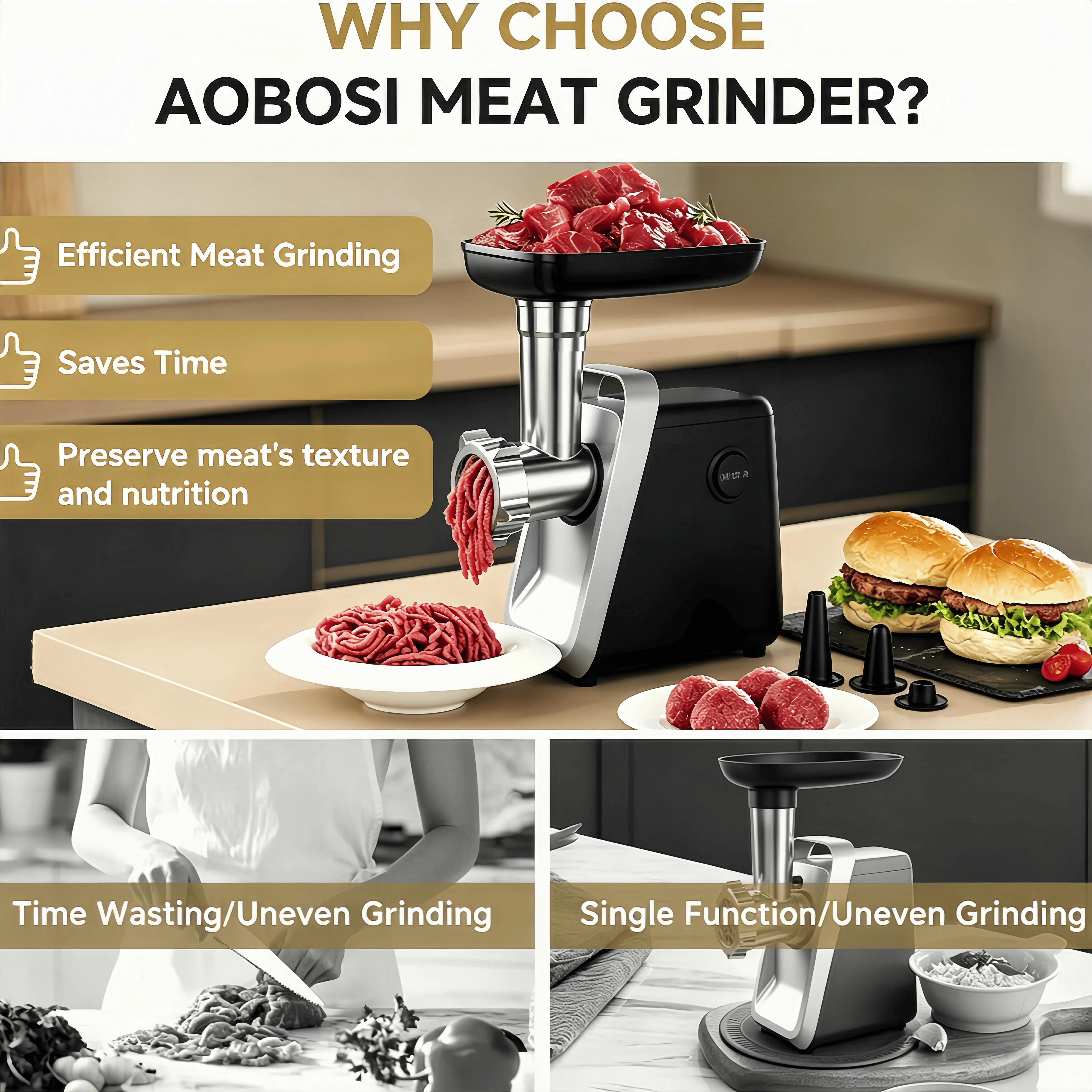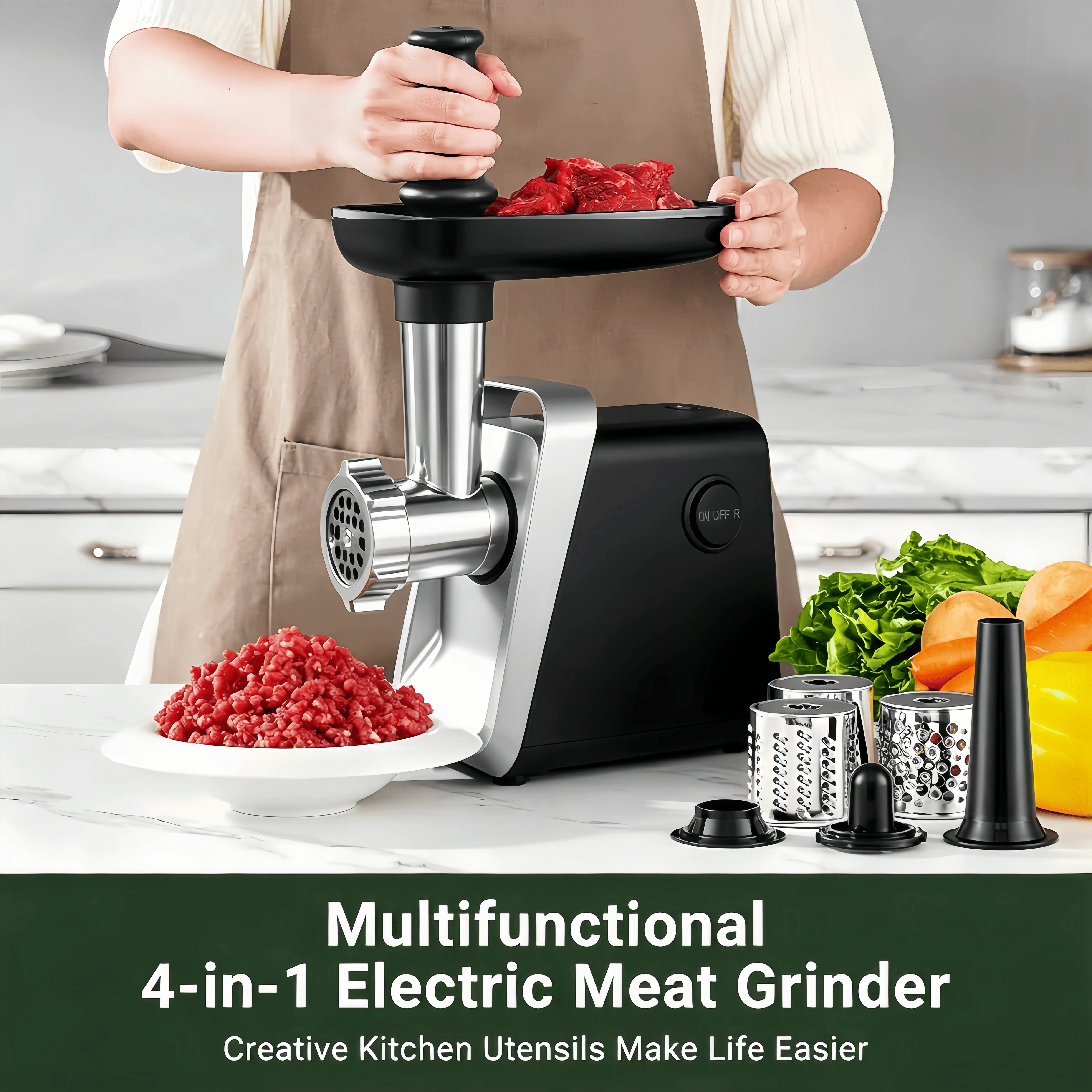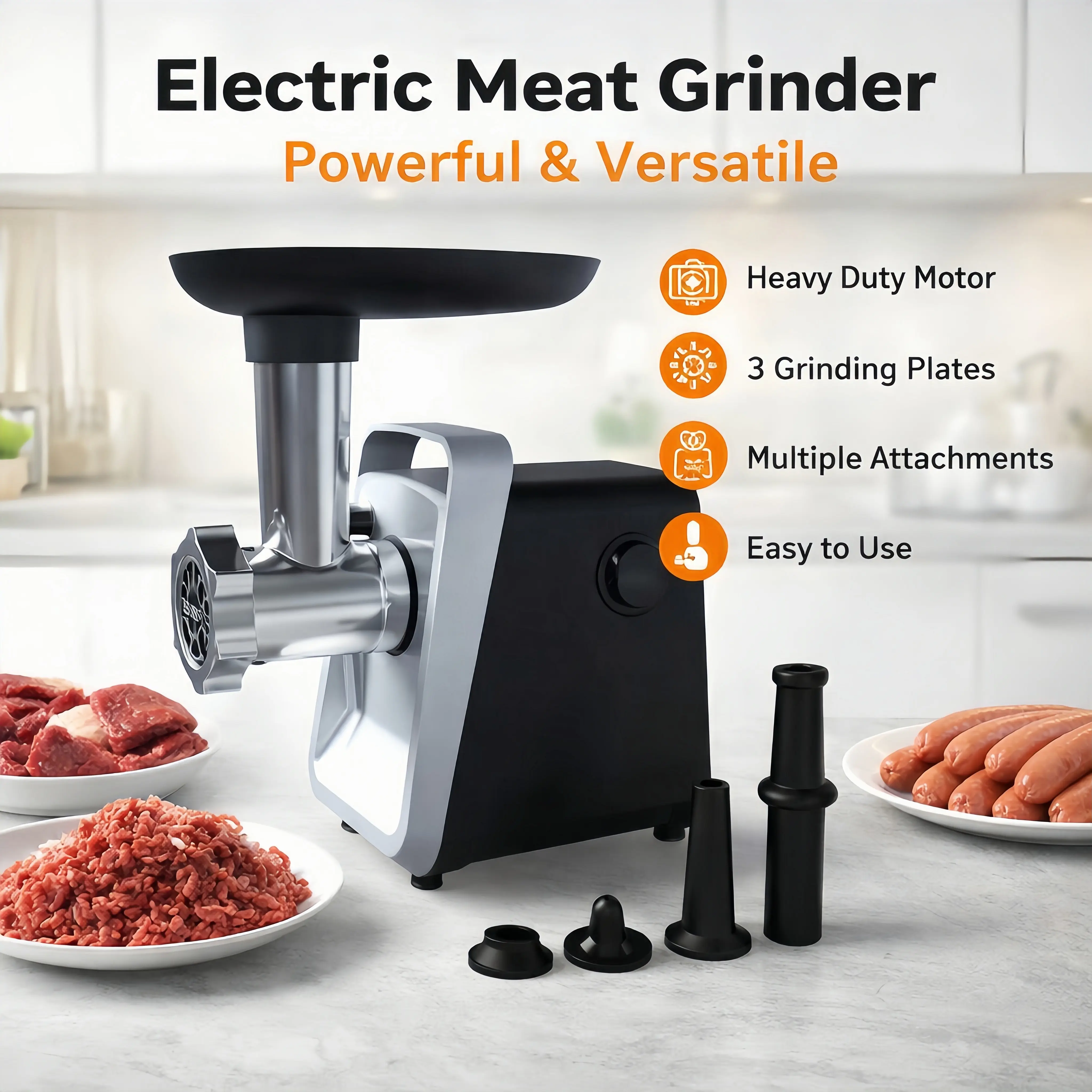 The 2800W Heavy-Duty Electric Meat Grinder is ideal for home use. It features a robust 200 RPM speed, ensuring efficient grinding. With 120V operation, it handles various meat tasks effortlessly. This grinder is a practical choice for any kitchen.