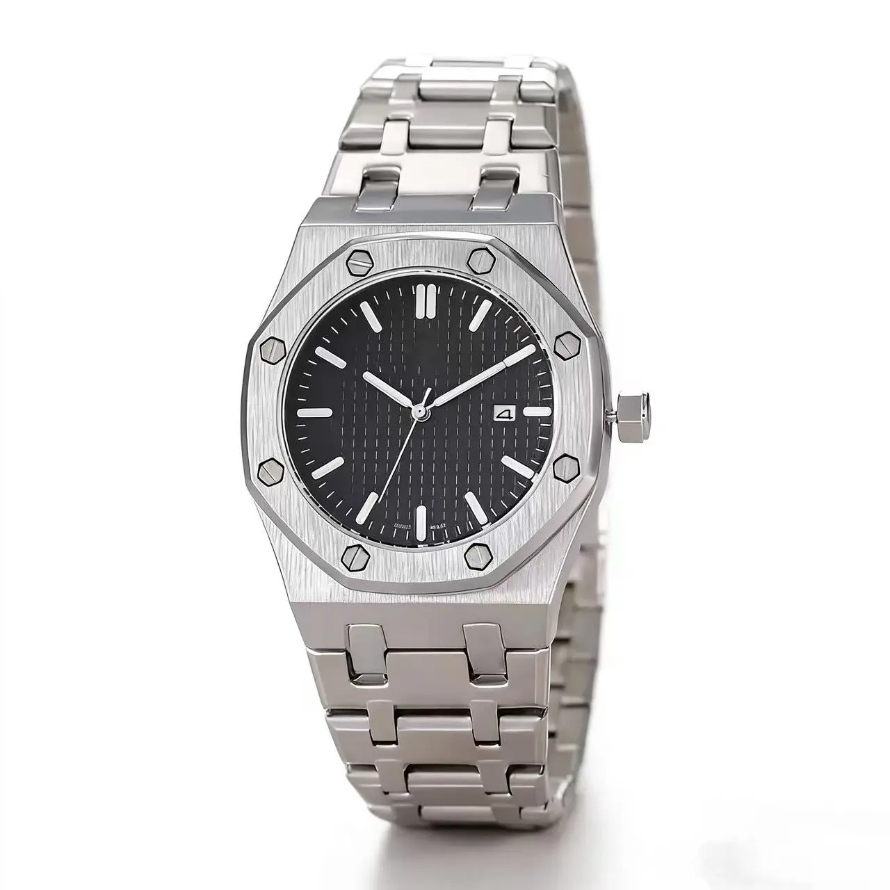 A fashionable square-shaped watch made of natural gemstones and alloys, with adjustable features.