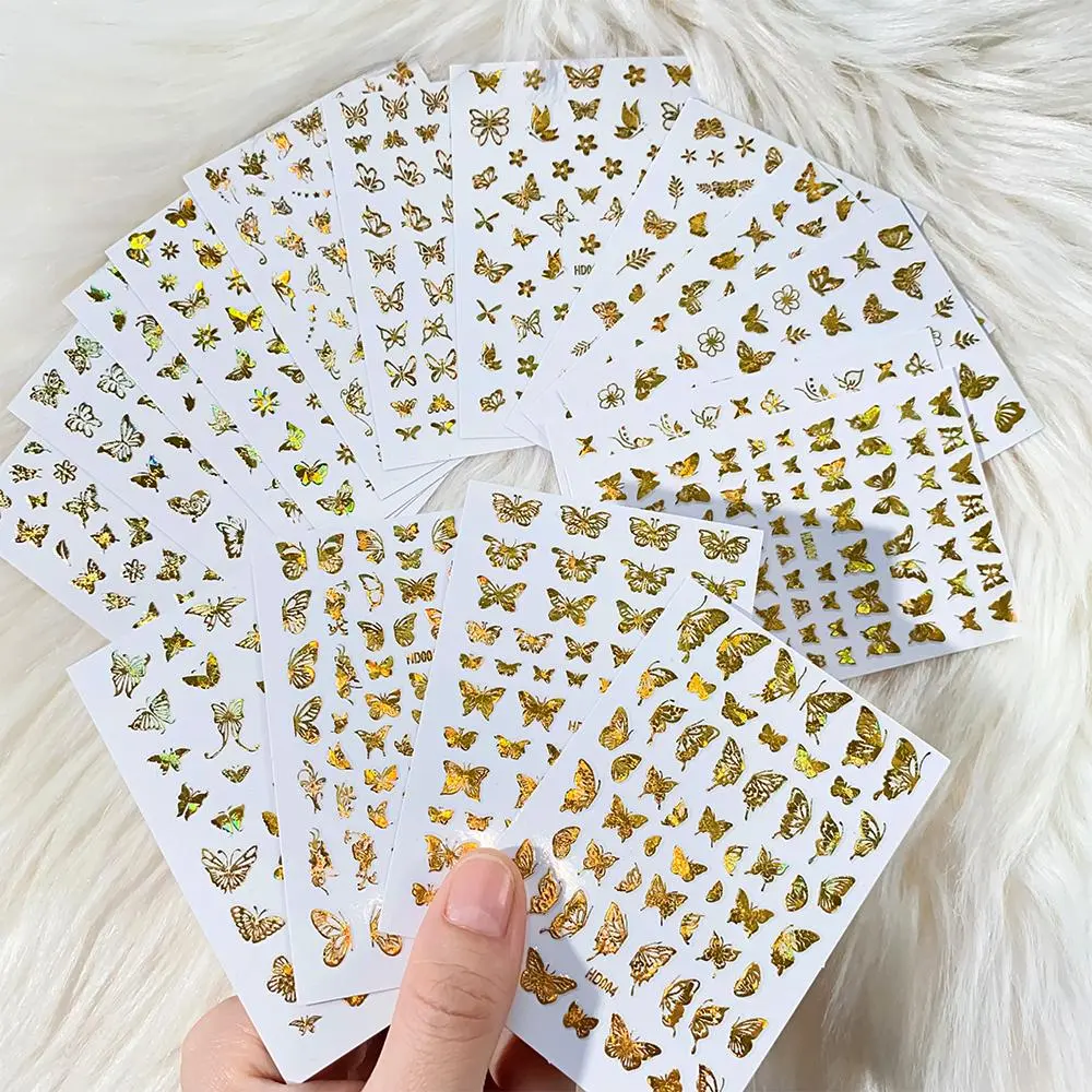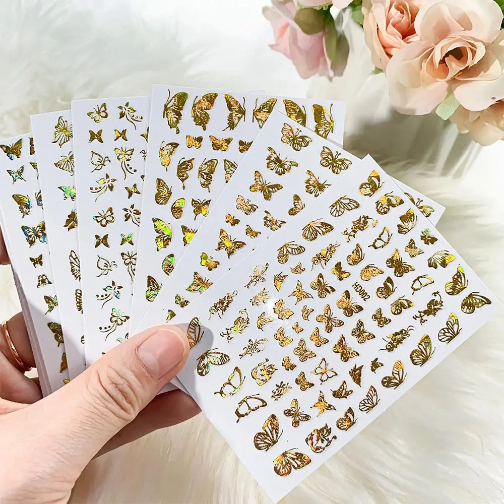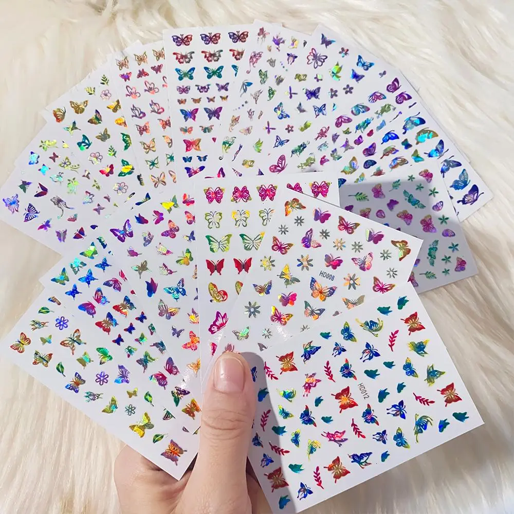 16/12/10/8/6Pcs Laser Butterfly Nail Stickers 8*10cm Colorful Butterfly Transfer Decals Self-adshesive HOLO Butterfly Sliders &*