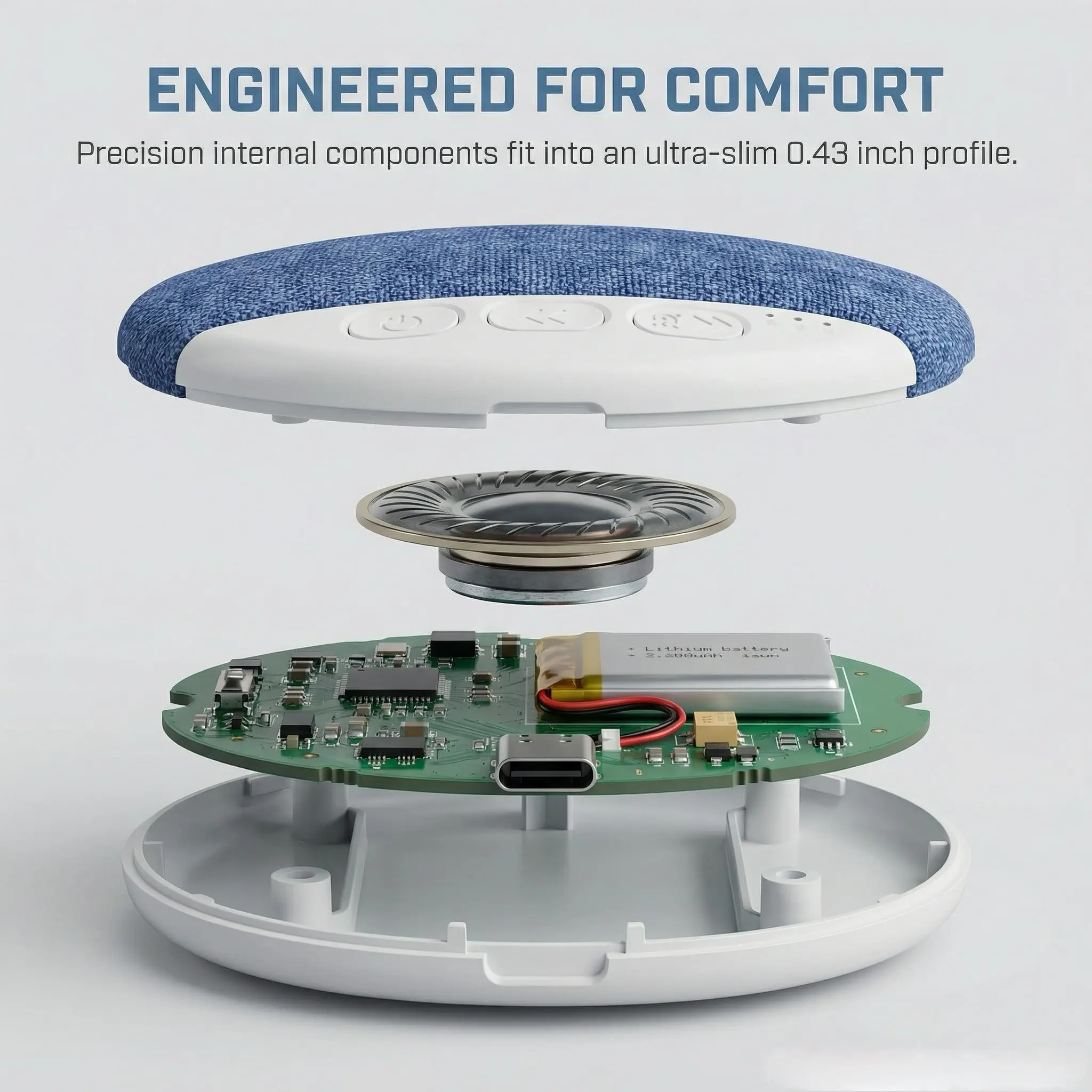 ️ 【Feels Like Nothing Under Your Pillow】: At just 0.43 inches thin and 1.7 ounces, this is the slimmest sleep speaker available. The soft, flexible fabric slides under your pillow and disappears. No hard lumps, no pressure points. Whether you're a side sleeper or back sleeper, you won't even know it's there.
