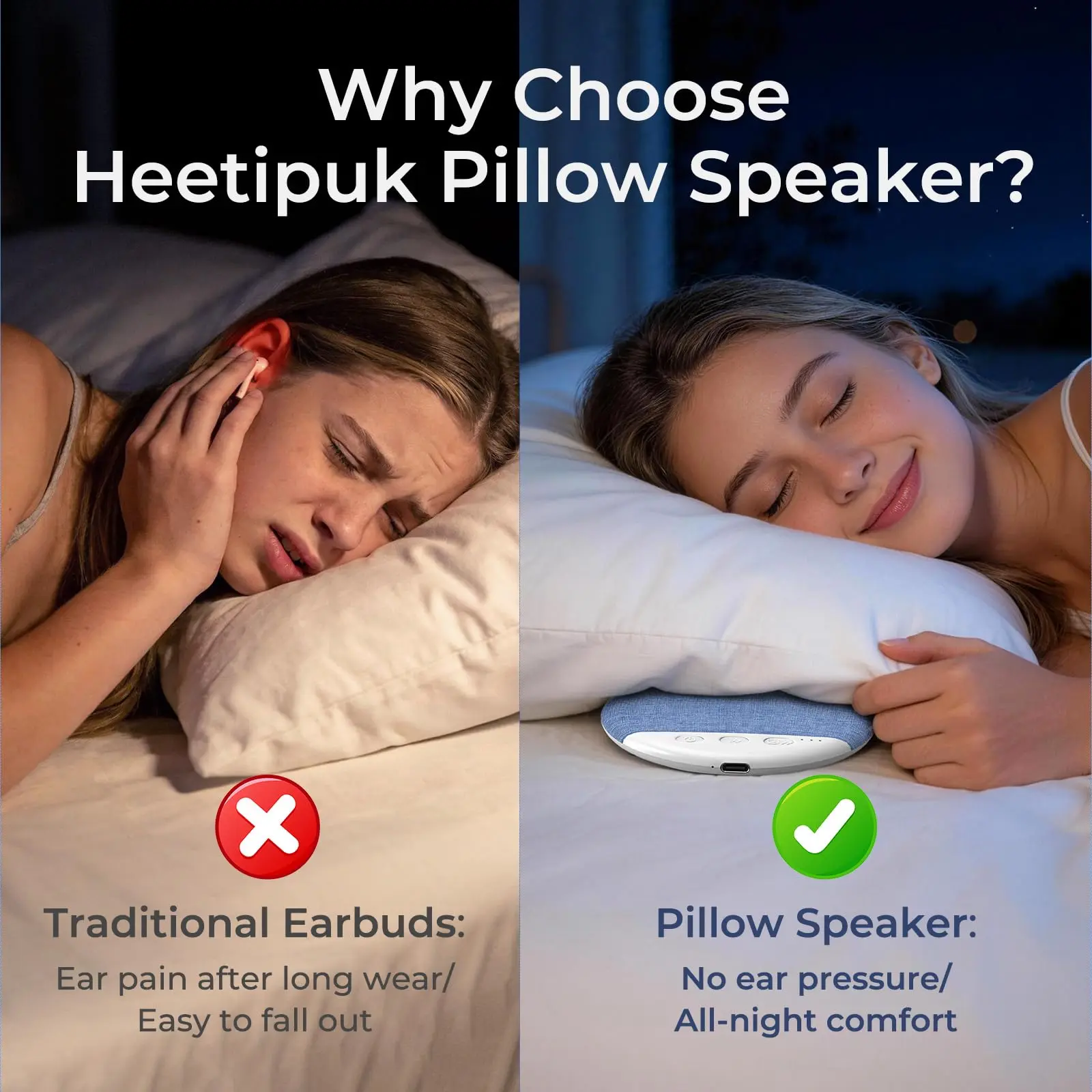 【Stop Hearing Your Partner Snore】: Whether it's a snoring spouse, a noisy street, or just a restless mind, this under-pillow speaker creates your own private sound zone. Play white noise, rain sounds, or a podcast directly through your pillow. It masks distractions so you fall asleep faster—without waking up the person next to you.