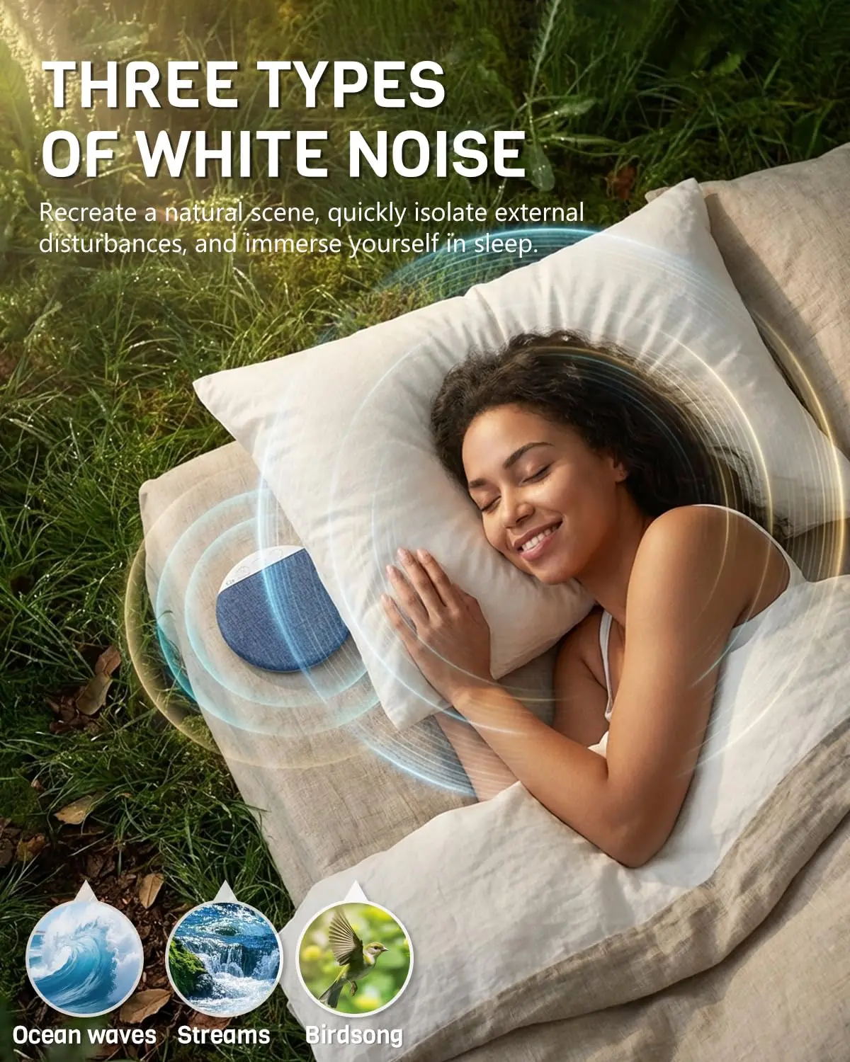 【 48-Hour Battery & Auto-Off Timer】: One charge lasts over a week of nightly use. Plus, the built-in sleep timer (30 to 90 minutes) automatically shuts off the sound after you drift off. Saves battery, saves hassle, and gives you peace of mind.