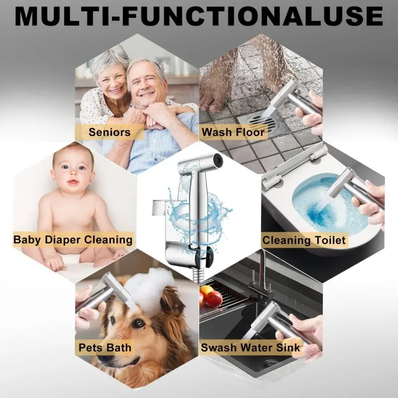 Bidet Sprayer – Handheld Jet Spray for Attachment Toilet, Adjustable Water Pressure Toilet Muslim Shower Easy to Install - Stainless Steel, with Bidet Hose for Feminine Wash(1)