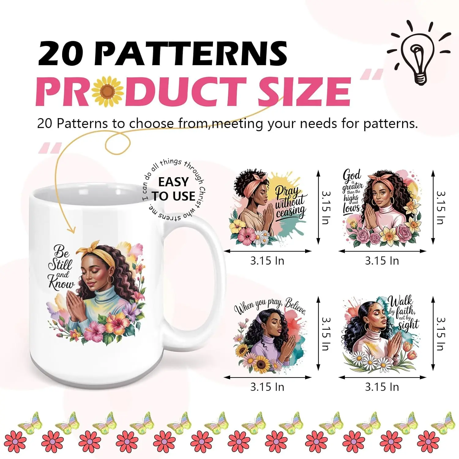 UV DTF Cup Wraps - 20 Sheets Black Women Praying Clipart UV DTF Stickers for Glass Cups