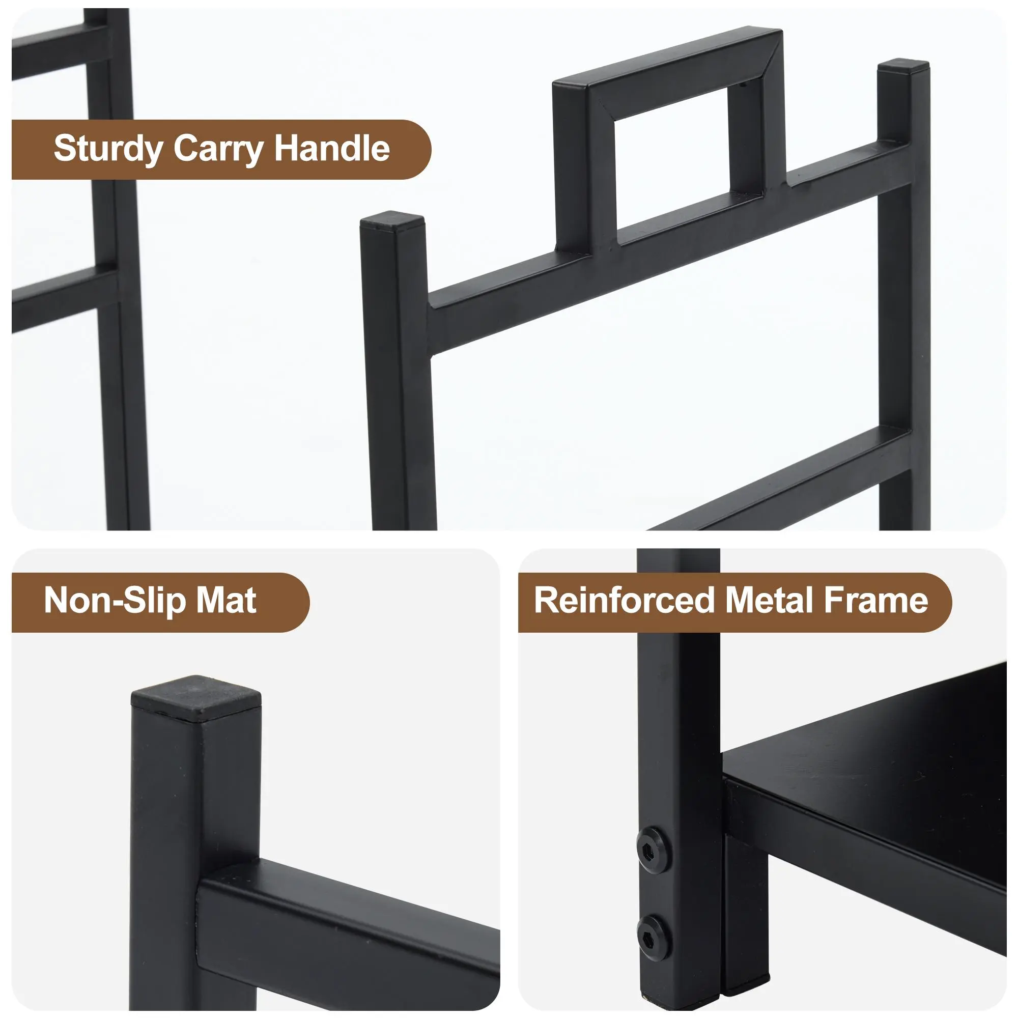 Keeps firewood off the ground to reduce contact with moisture and dirt.
