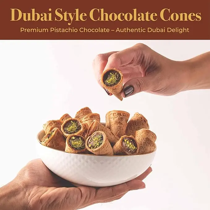 Leonessa Dubai Chocolate Cones with Pistachio Kunafa | Made with Premium Belgian Chocolates | Kunafa Chocolate | Chocolates de Dubai - 4.7 oz