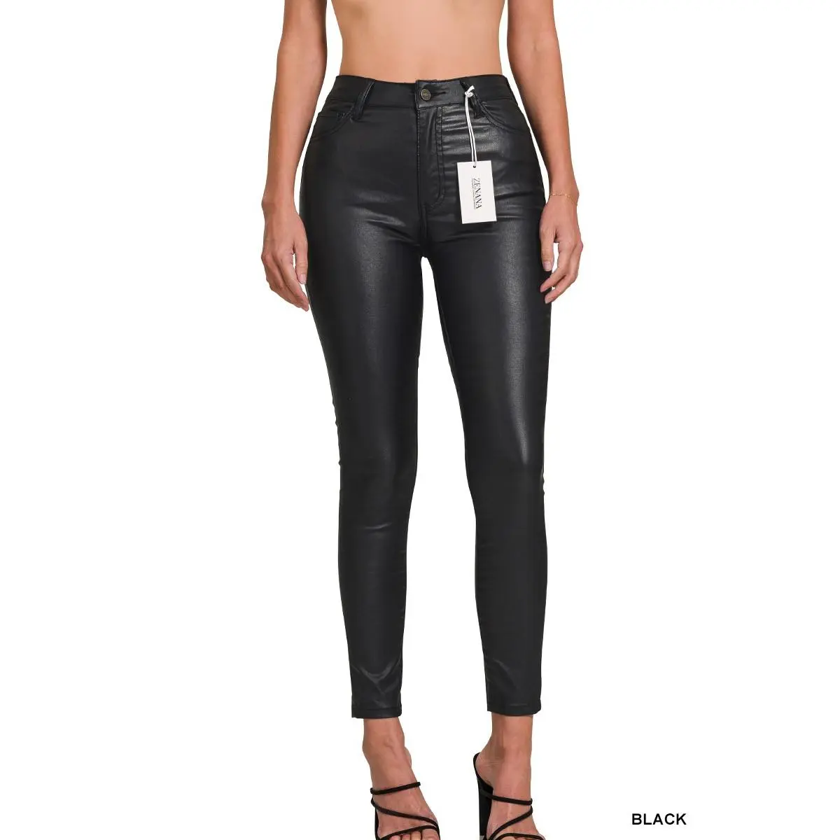 Add a touch of edgy sophistication to your wardrobe with these faux leather stretch skinny pants. The faux leather material gives these pants a sleek and stylish look, perfect for both casual and dressy occasions. The stretch fabric ensures a comfortable and flattering fit that moves with you throughout the day. The skinny fit offers a contemporary silhouette that can be dressed up or down with ease. Elevate your outfit with these versatile and chic faux leather skinny pants.