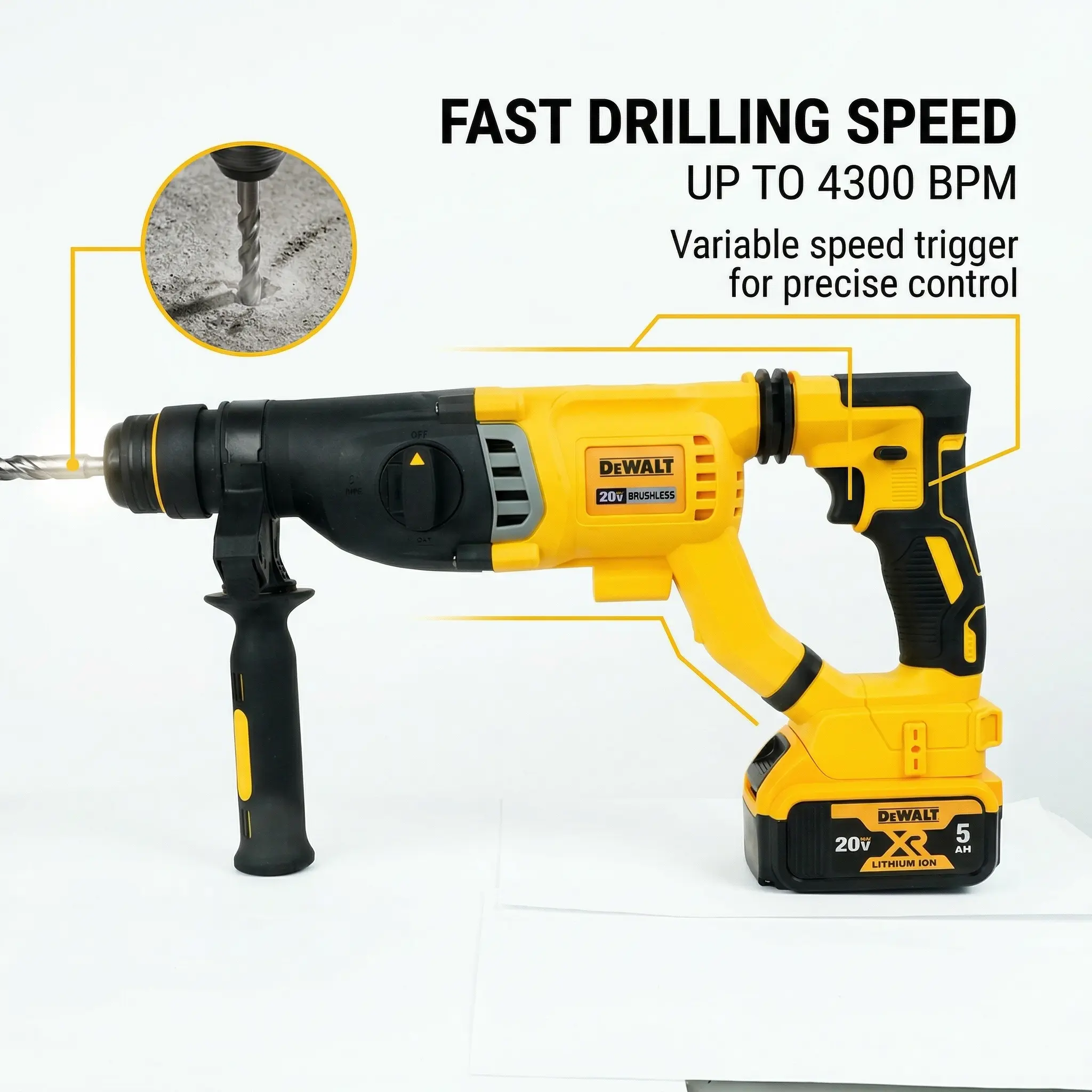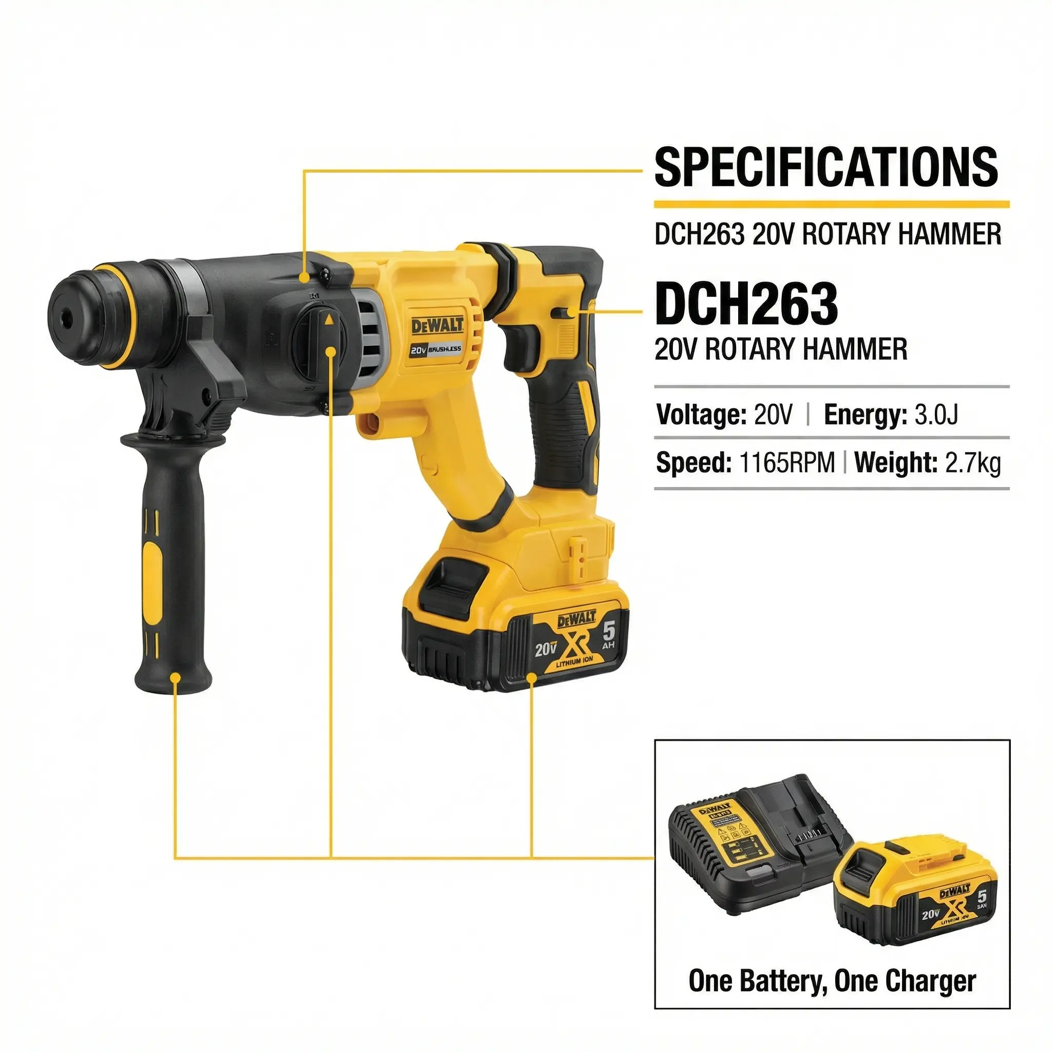 DEWALT DCH263 20V Brushless Rotary Hammer Drill for Concrete Construction torque multiplier