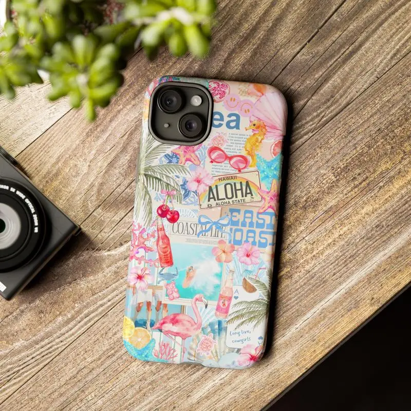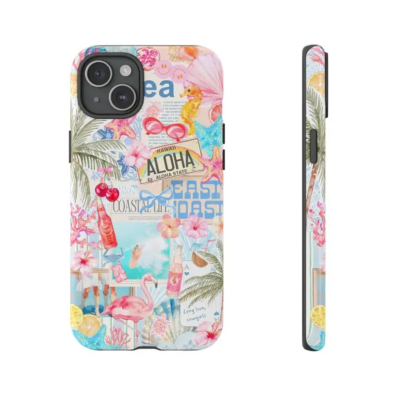 Coquette Aloha Collage Phone Case, Preppy Cute Summer Phone Cover for iPhone