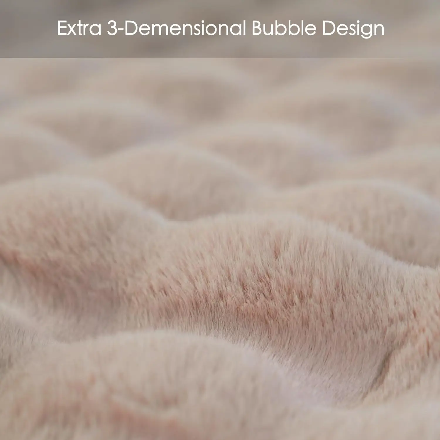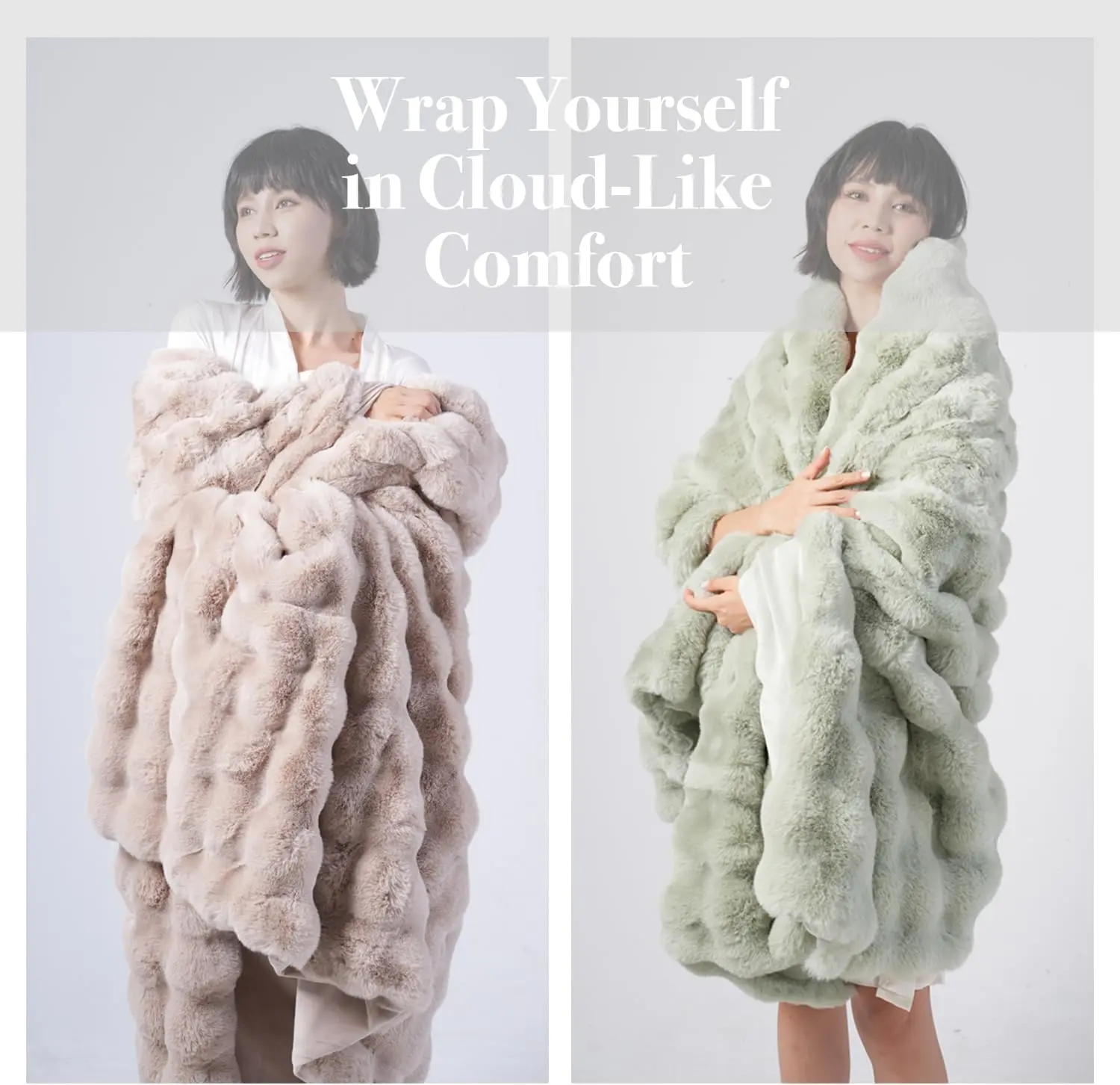 These blankets/throws are beautiful. Soft, with the feel, and look of real rabbit fur. Velvet like fur underside, warm, and cozy. I have two; one folded over my sofa, and one for my bed. good product, nice price. A+.