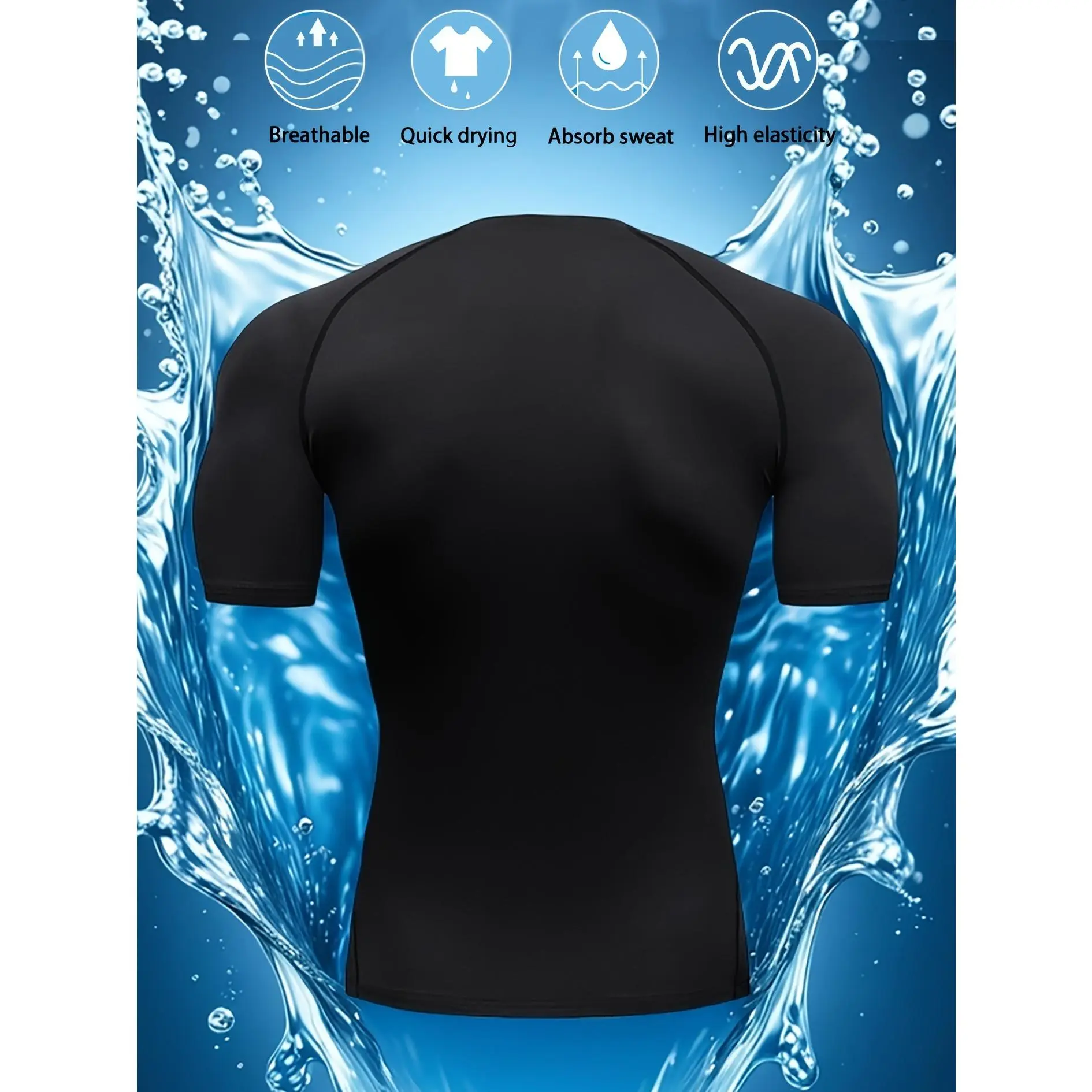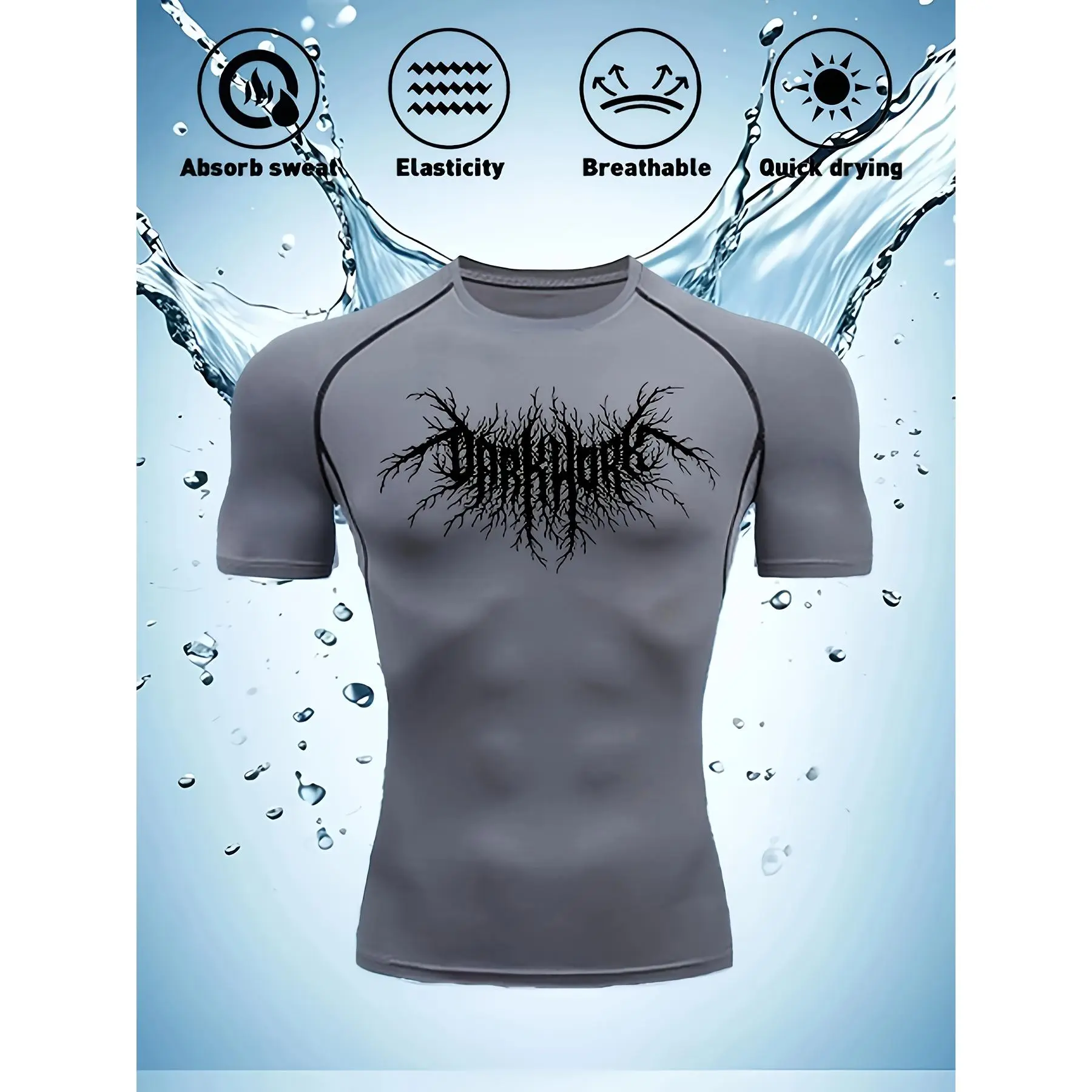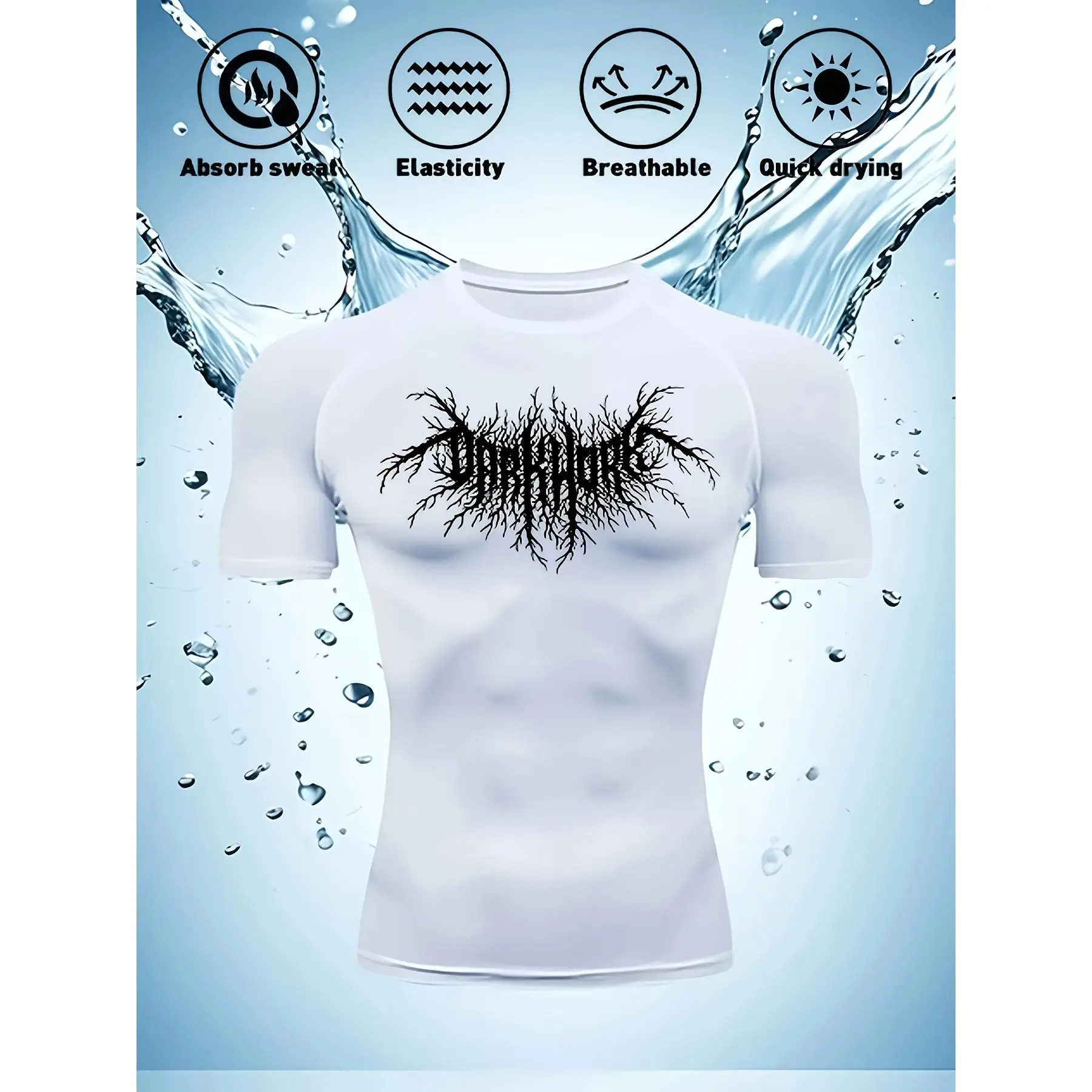 Men's Quick-Drying Compression Sweatshirt - Moisture-wicking and sweat-absorbing fitness top with thorn print, high-elasticity and breathable short sleeves, suitable for training, running, cycling, yoga and outdoor activities, slim fit.