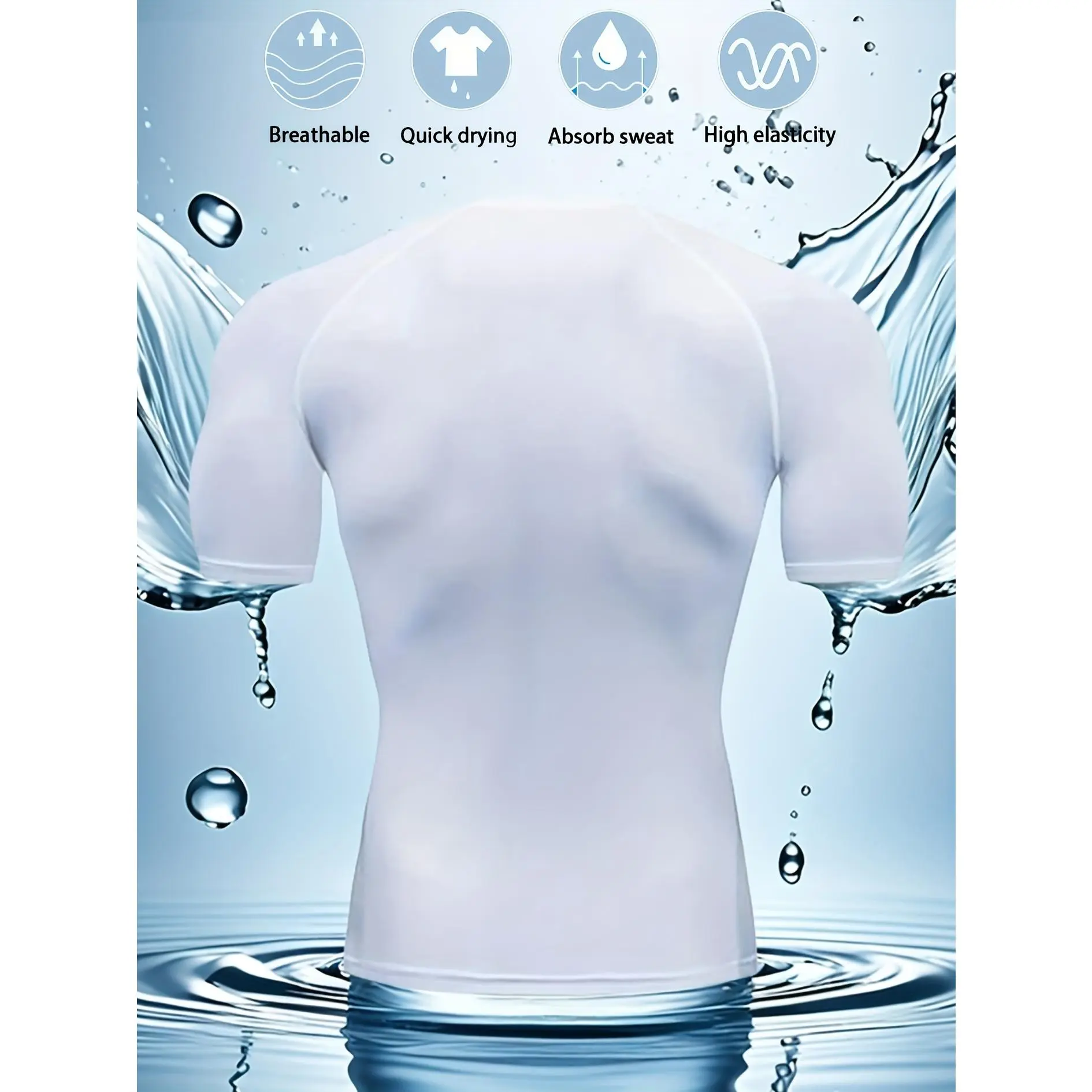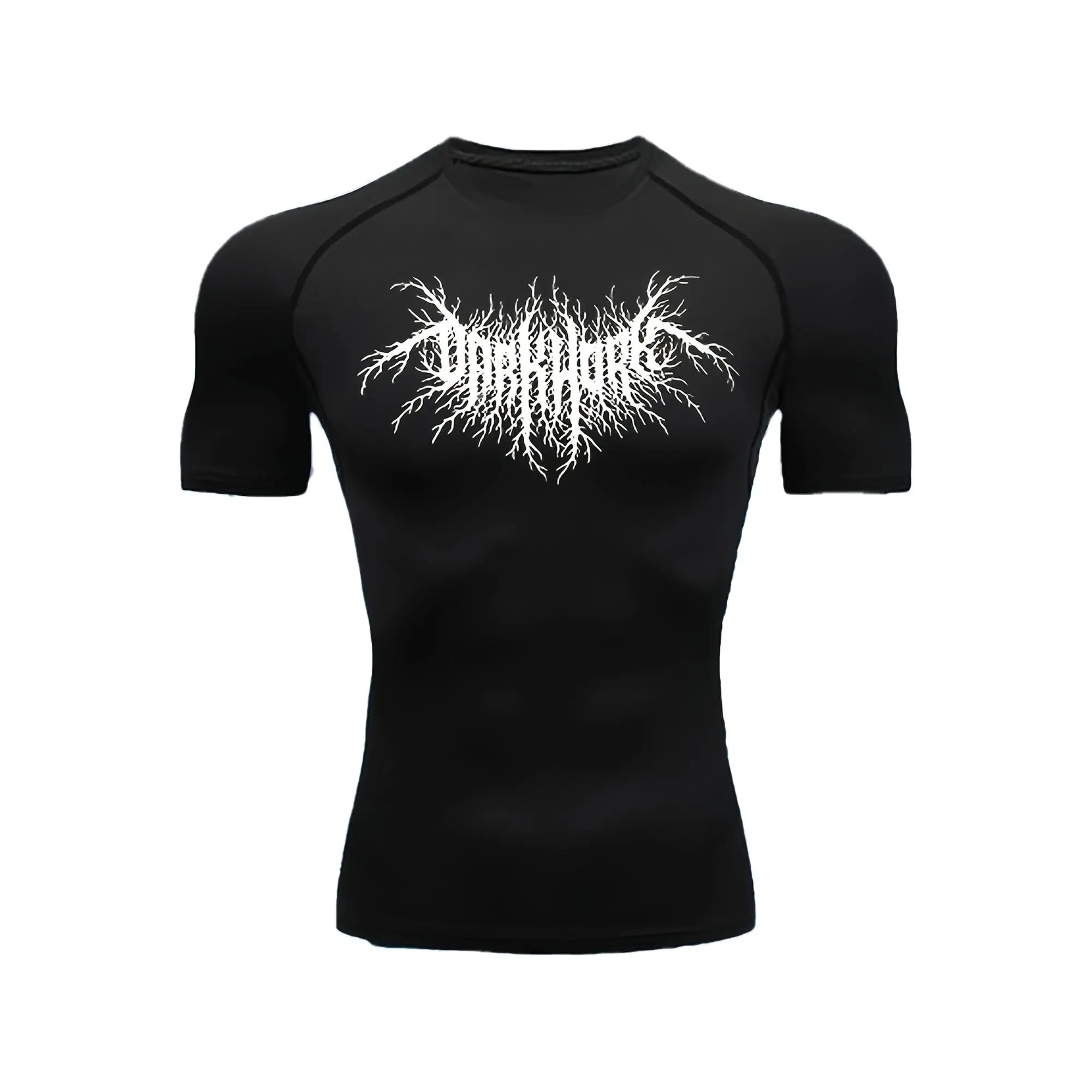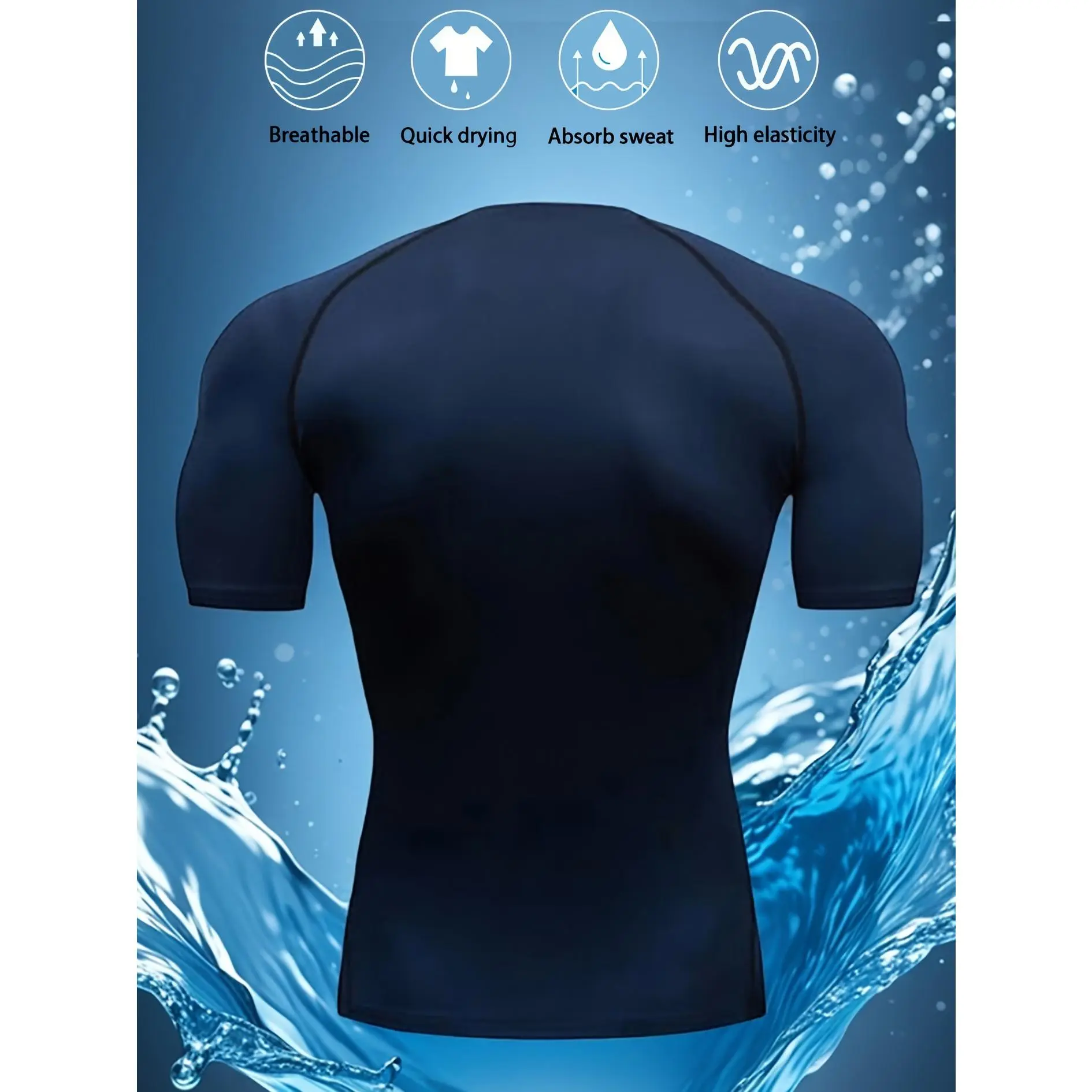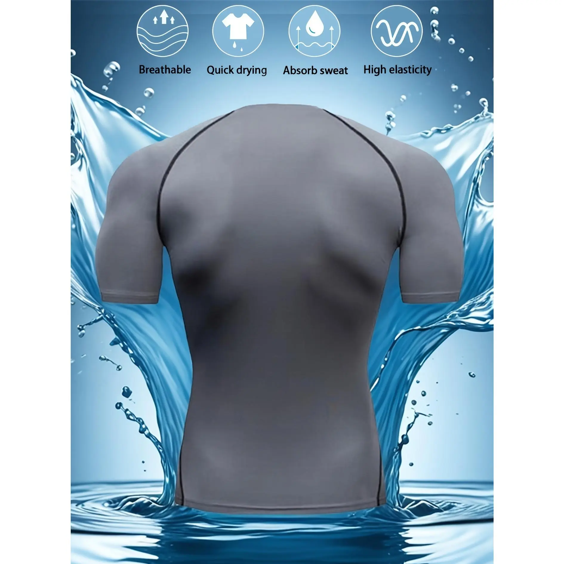 Men's Quick-Drying Compression Sweatshirt - Moisture-wicking and sweat-absorbing fitness top with thorn print, high-elasticity and breathable short sleeves, suitable for training, running, cycling, yoga and outdoor activities, slim fit.