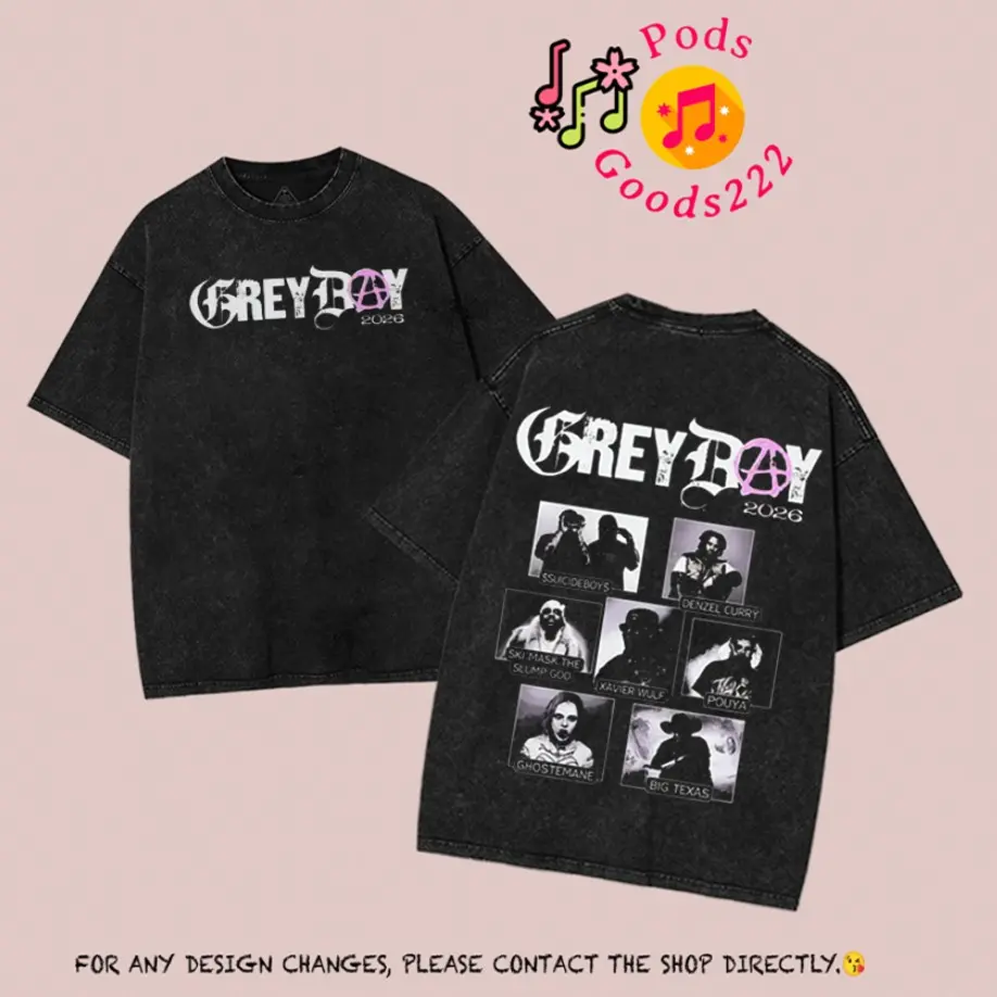 Greyday 2026 Tour Washed Shirt – Vintage Washed Oversized Graphic T Shirt, Underground Hip Hop Artist Lineup Style, Dark Aesthetic Streetwear, Heavy Cotton Washed Tee, Casual Unisex Men Women Top, Music Fans Gift