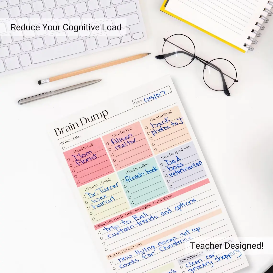 A5 Brain Dump Notebook, 50 Pages Daily To-Do List Planner, Focus Concentration, Improve Efficiency, Reduce Stress, Essential Organizer