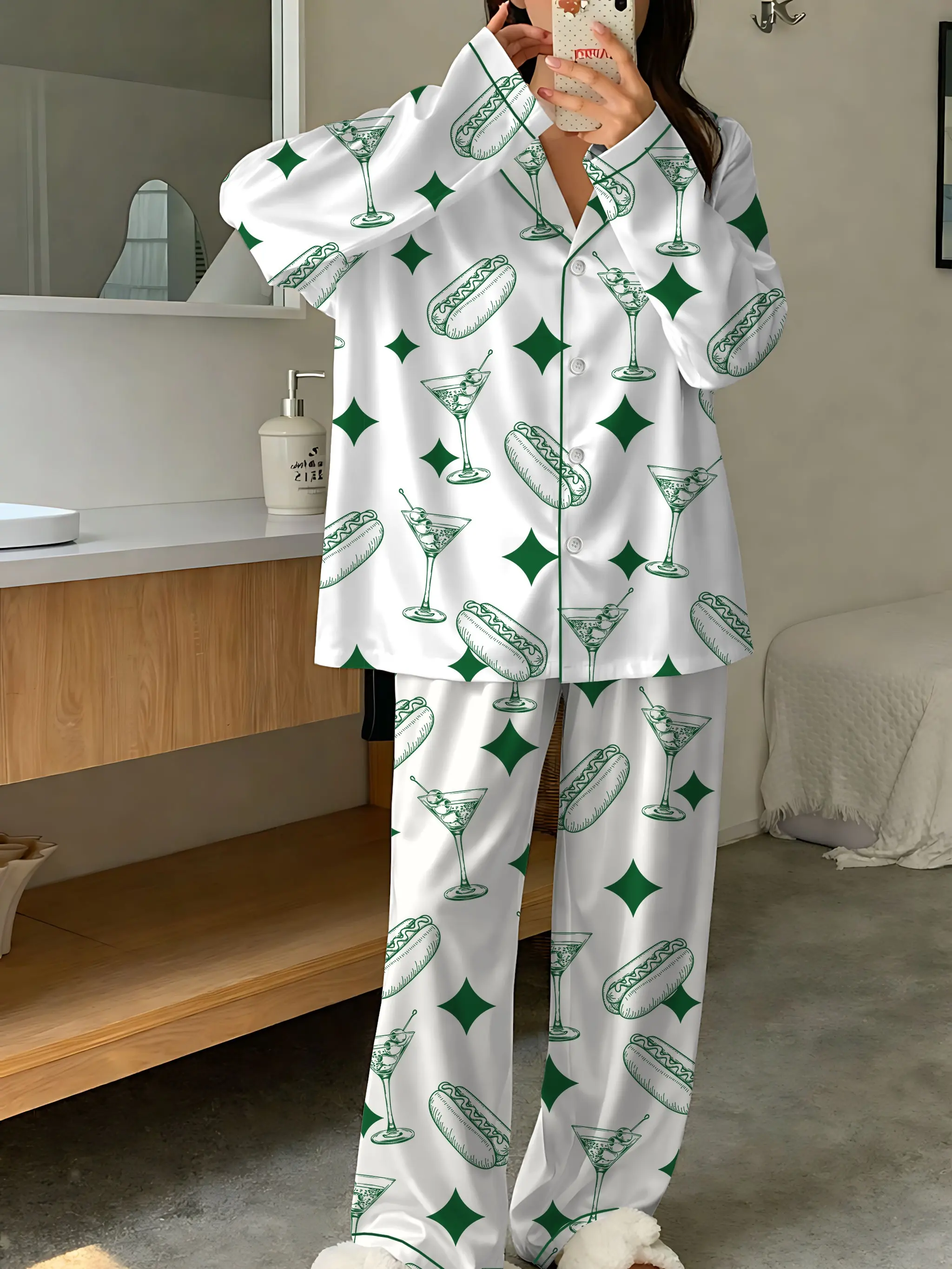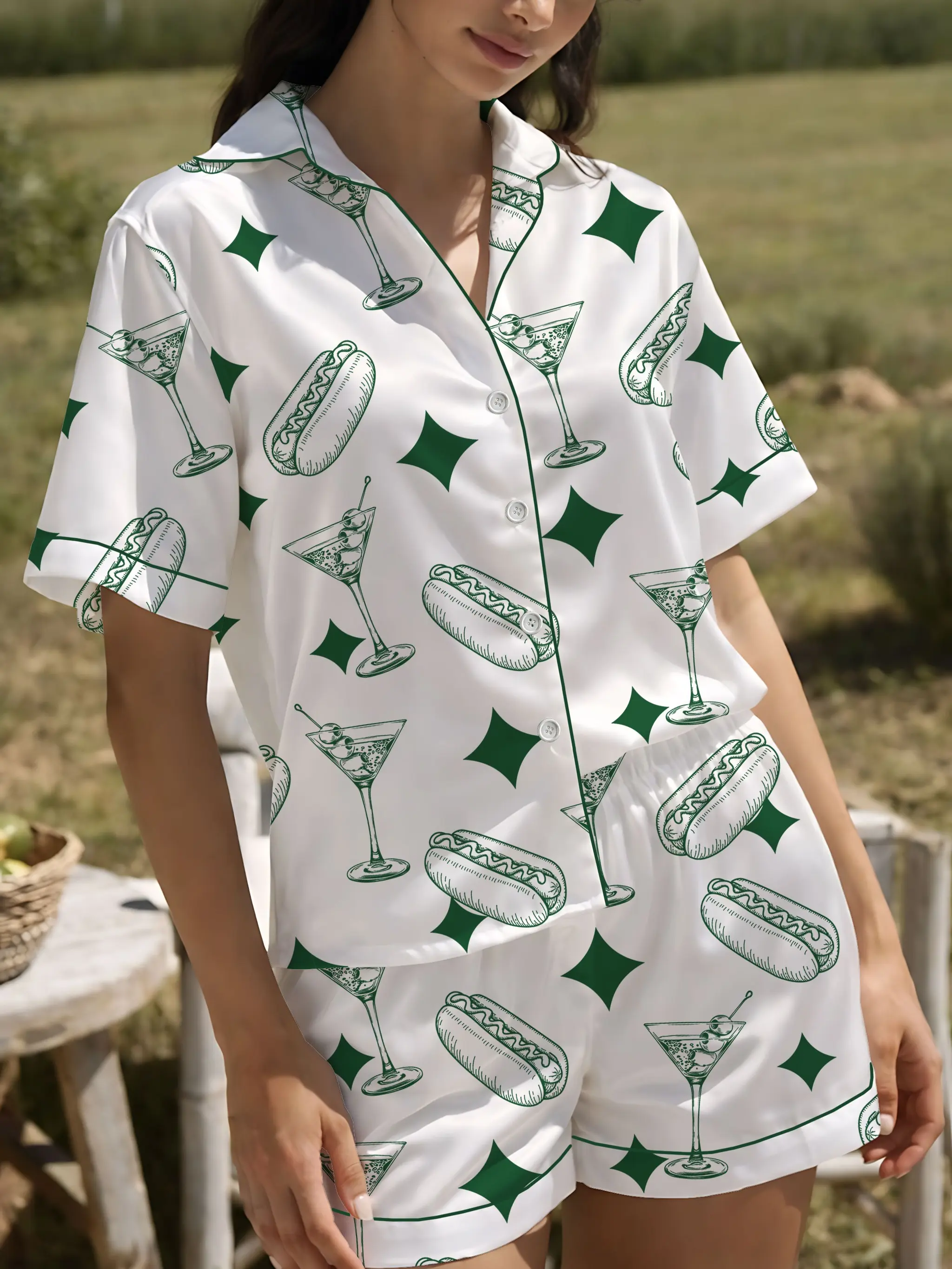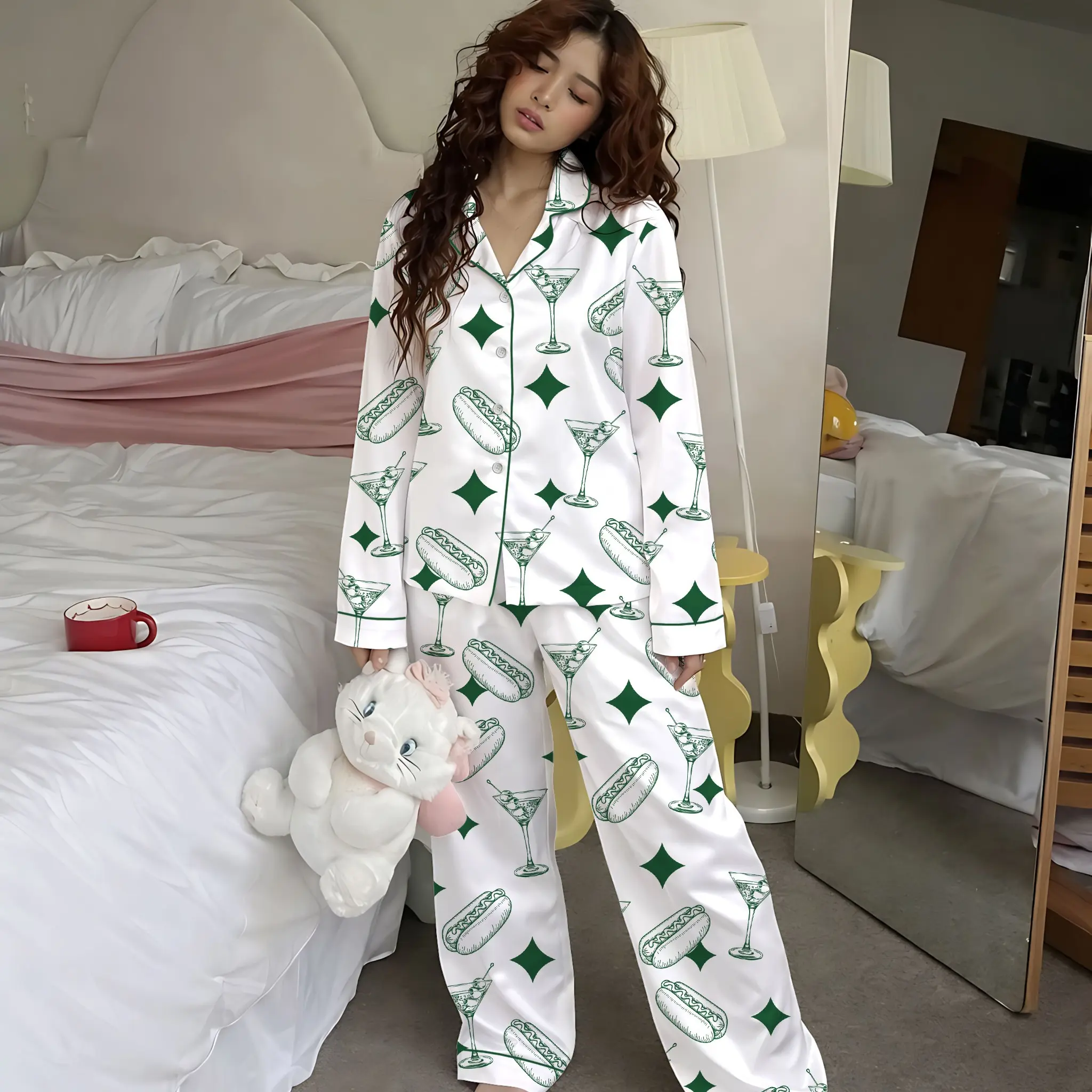 Upgrade your loungewear with our Women’s Satin Pajama Set, designed for both comfort and style. Made from smooth satin fabric, this set feels soft on the skin with a light, breathable touch and a subtle shine. The playful all-over print adds a fun, trendy vibe—perfect for relaxing at home or unwinding in style.