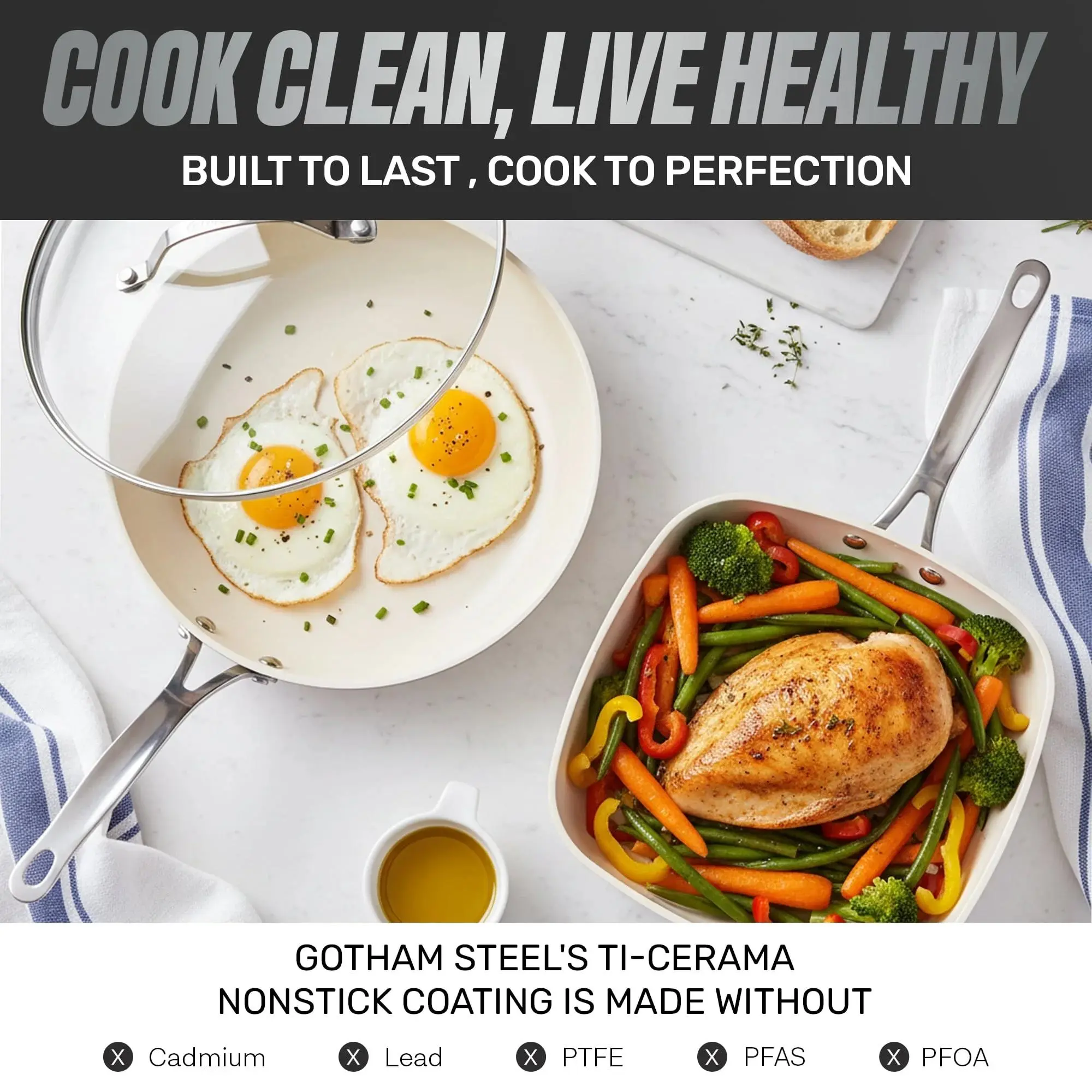 Cook healthier every day with this nonstick ceramic marvel. Free of harmful toxins, these pots and pans provide a safe cooking environment, giving you peace of mind as you whip up your favorite meals. So go ahead, indulge in guilt-free cooking!