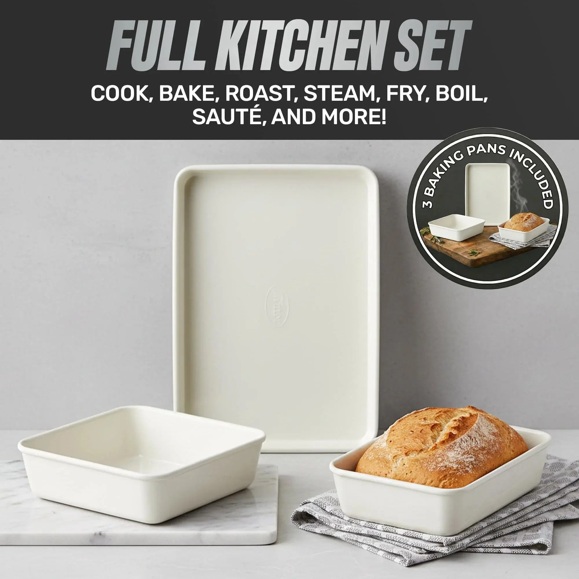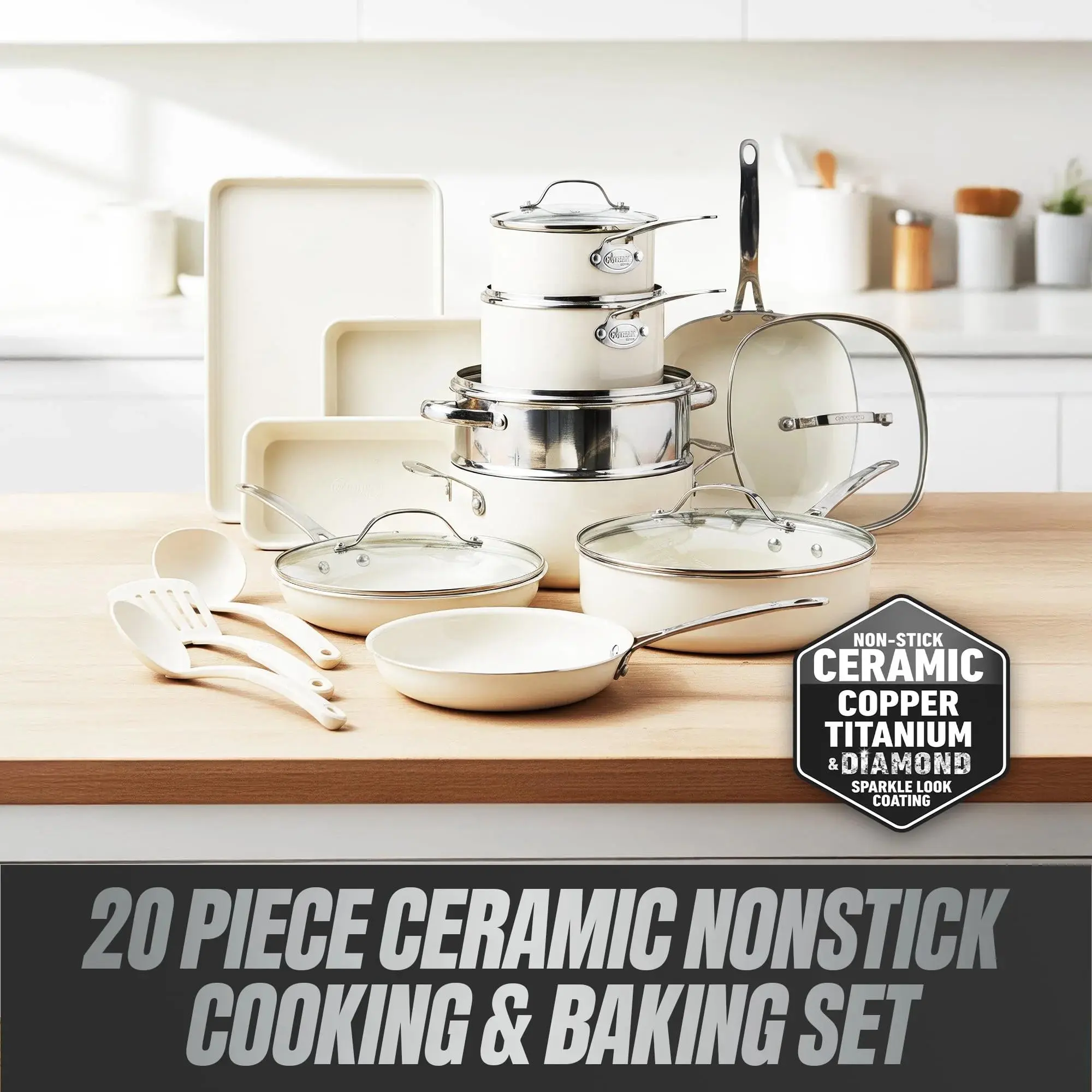 Get Cookin' with 20 Pc Ceramic Pots & Pans Set: Non-Stick, Bakeware Included, Utensils, Oven & Dishwasher Safe!