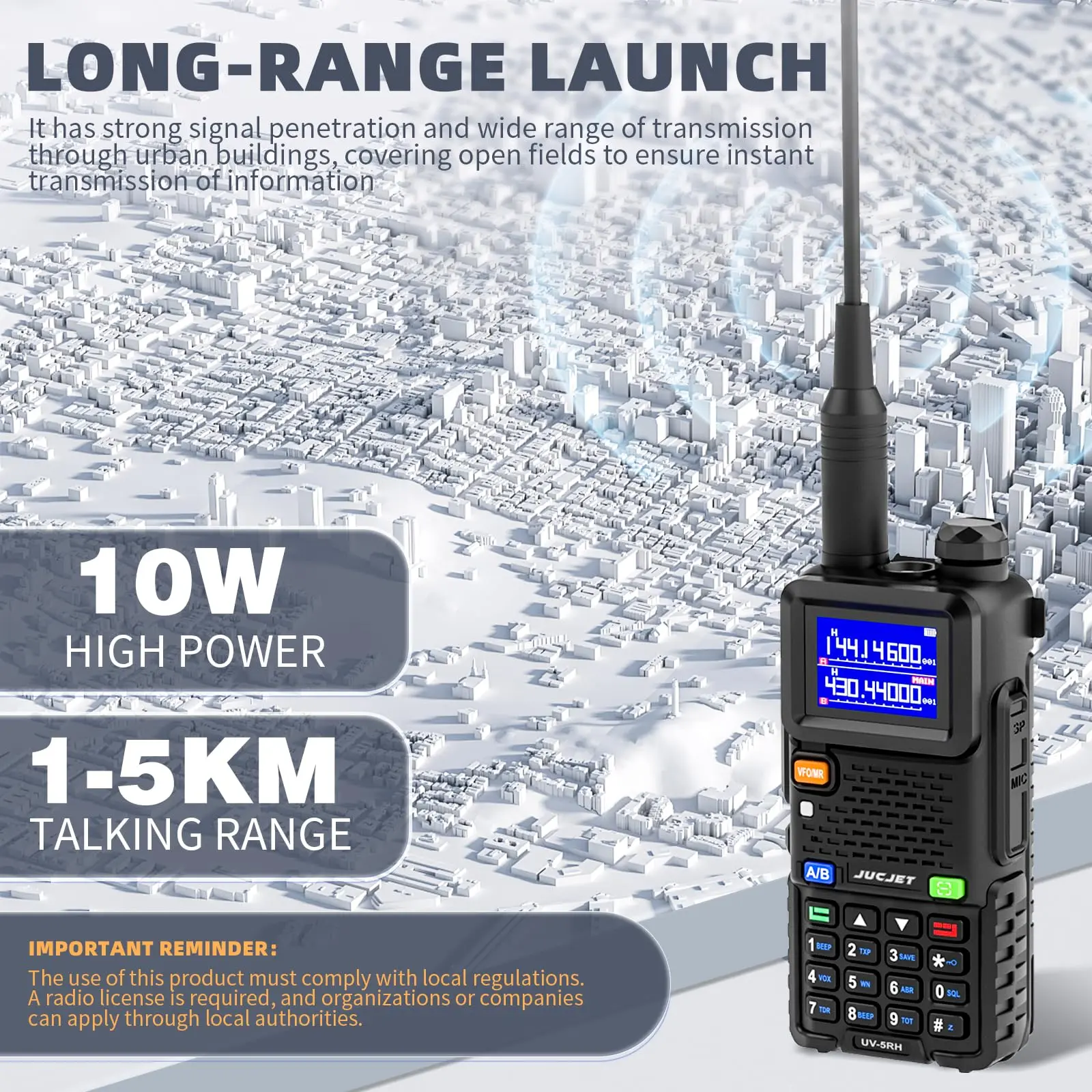 ·【10W High Power & FCC Certified】 Experience superior communication range with true high-power output. FCC ID: 2BEU8MJ-UV5RH. A professional-grade handheld radio designed for licensed amateur operators and outdoor emergency preparedness.