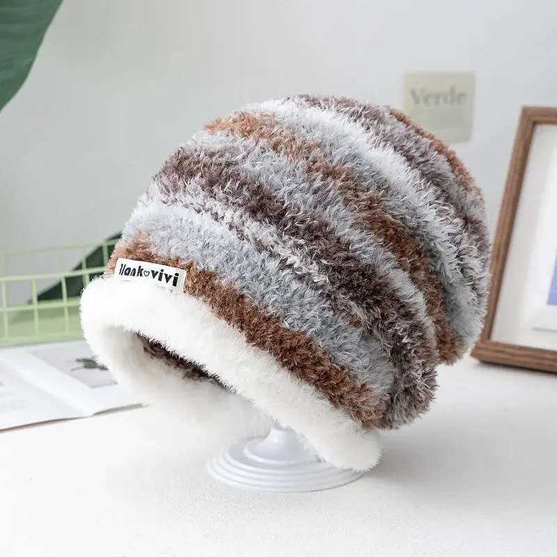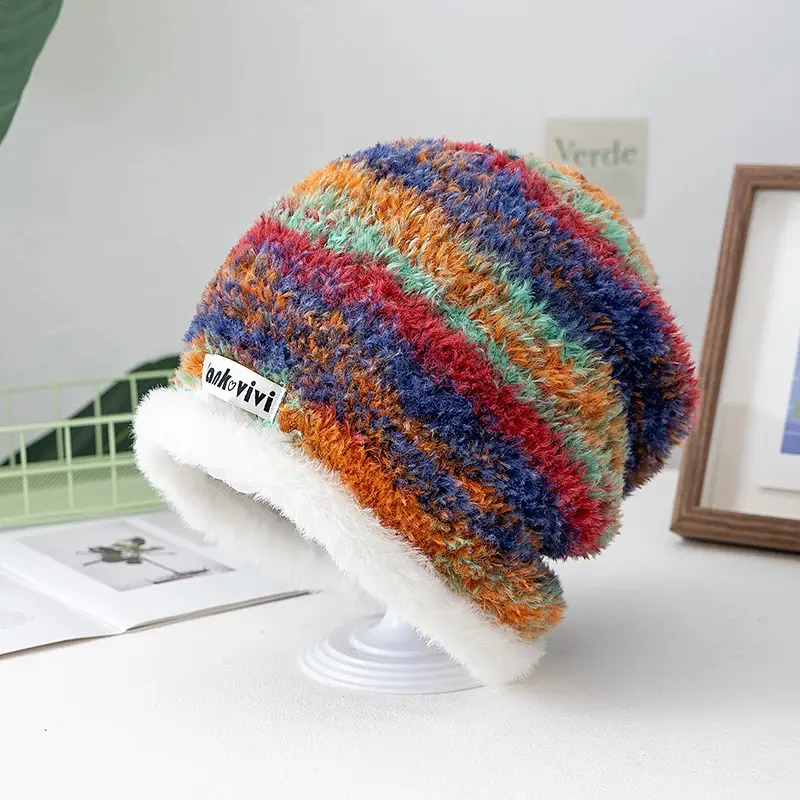 Hot Sale Loose Chic Hat Lazy Style Gradient Beanie Hat Fashion Winter Hats For Women Streetwear Multicolour Warm Hats For Girl