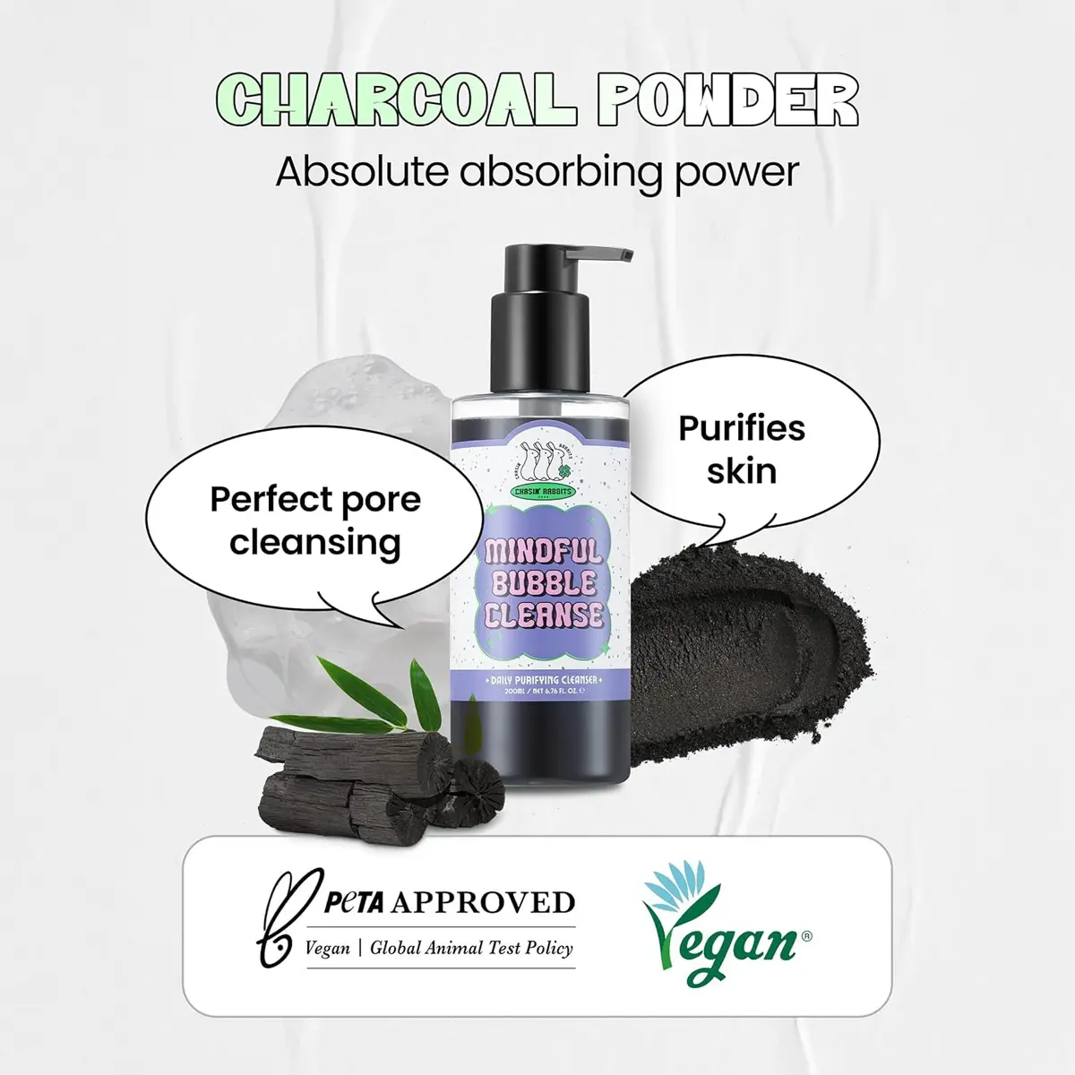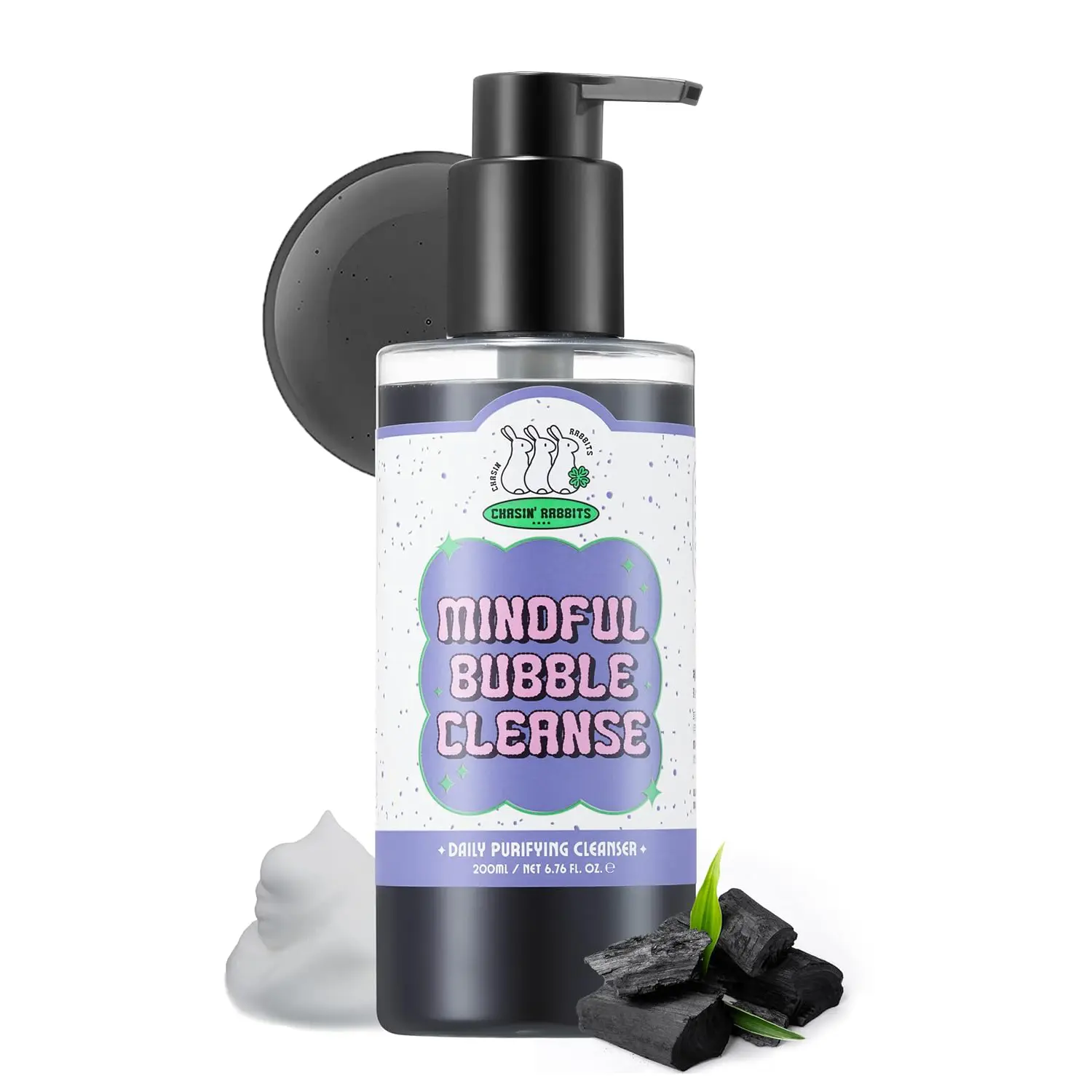 CHASIN' RABBITS Mindful Bubble Cleanse | Vegan All In One Face to Body Bubble Cleanser | Pore Purifying with Charcoal face wash for mens, For Oily Skin | 200mL/6.76 fl. oz