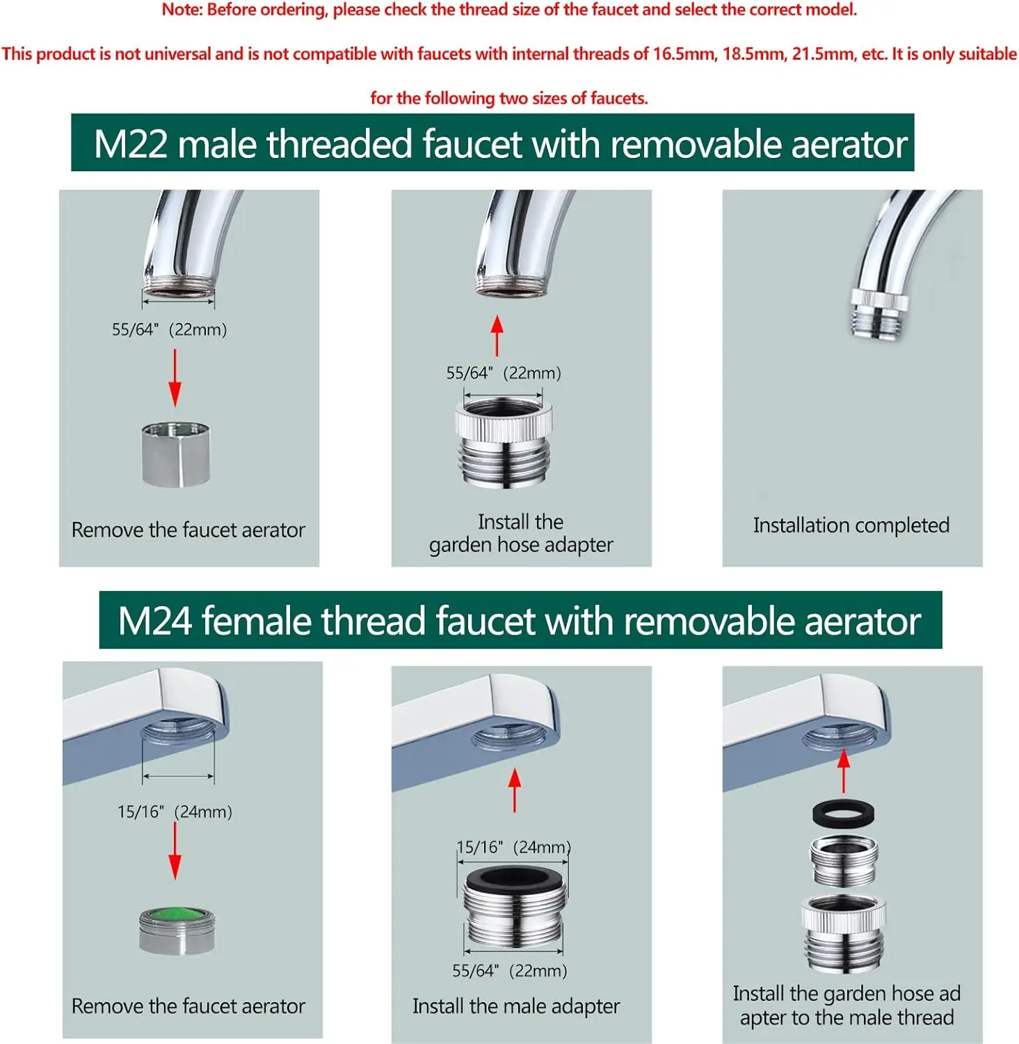 ·Bathroom/Kitchen Faucet Hose Adapter :only Be Used For Faucets With Detachable Aerators. The Adapter Has 55/64"Threads And Is Installed On The Faucet With 55/64"Male Threads. It Is Provided With 55/64"X 15/16"Male Thread Adapter, Which Can Be Used On The 15/16"Female Thread Faucet.