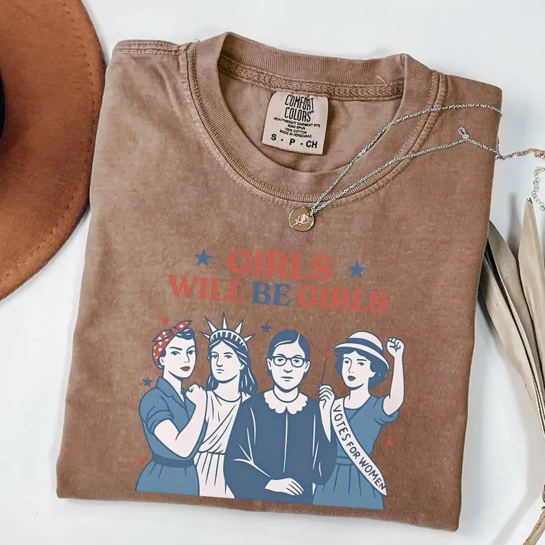 Comfort Colors® Girls Will be Girls Shirt, Patriotic Feminist 4th of July Tee, Strong American Women T-Shirt, Independence Day Gift for Her