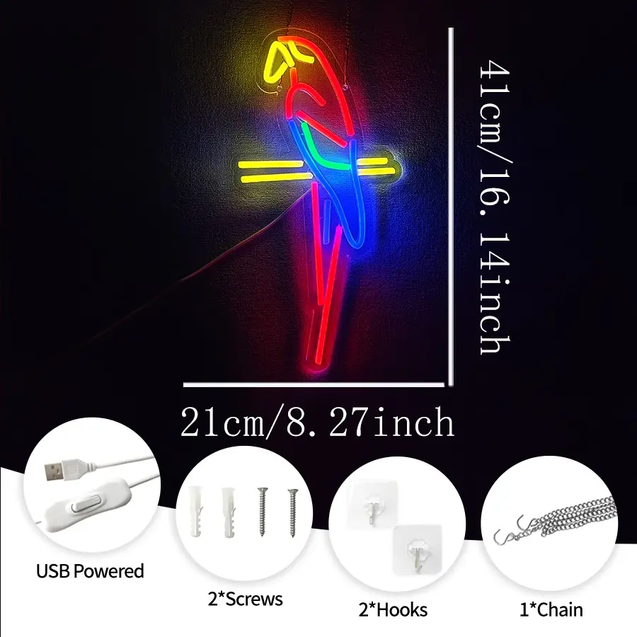 【Unique Design】: Parrot-shaped neon sign offers a distinctive look compared to traditional signage.