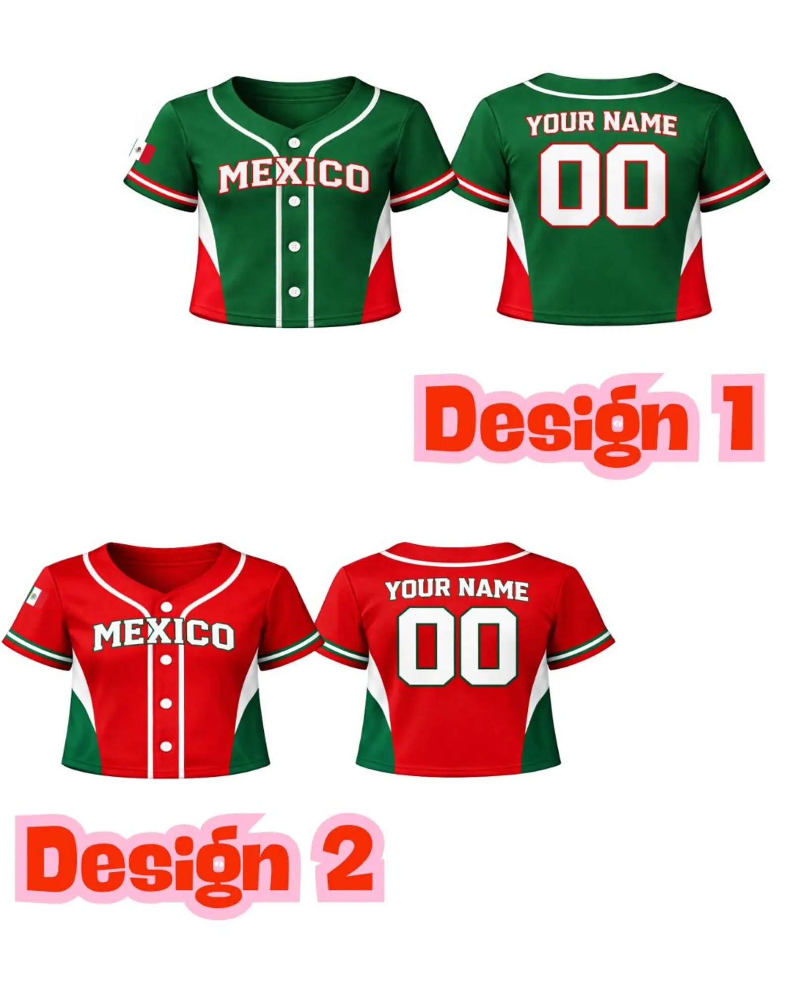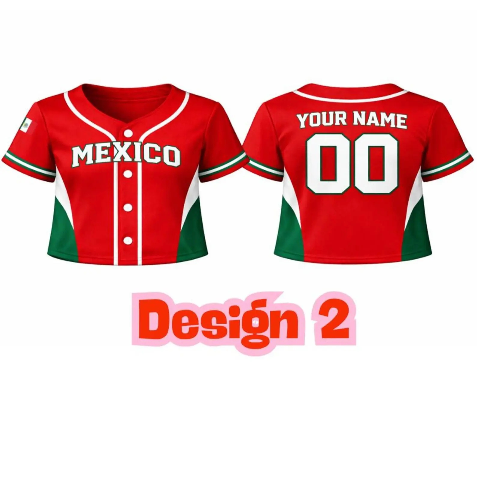 Personalized Mexico Croptop Baseball Jersey , Custom Name + Number Shirt, Note Number And Name On Your Order