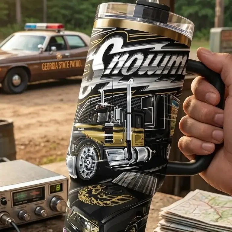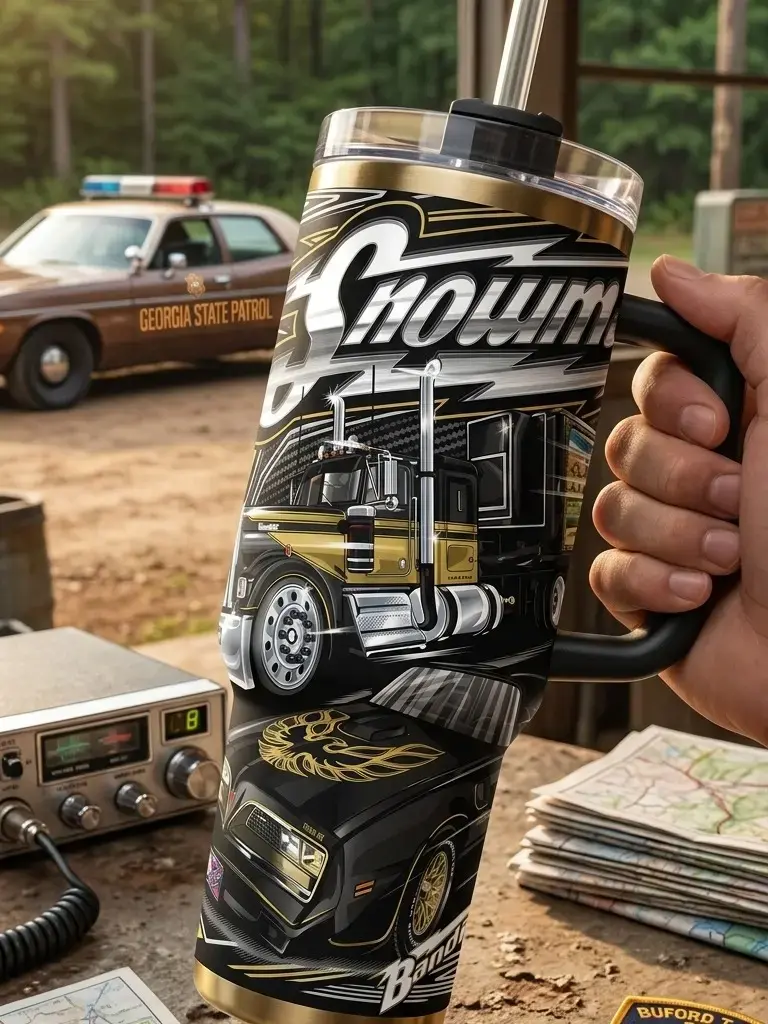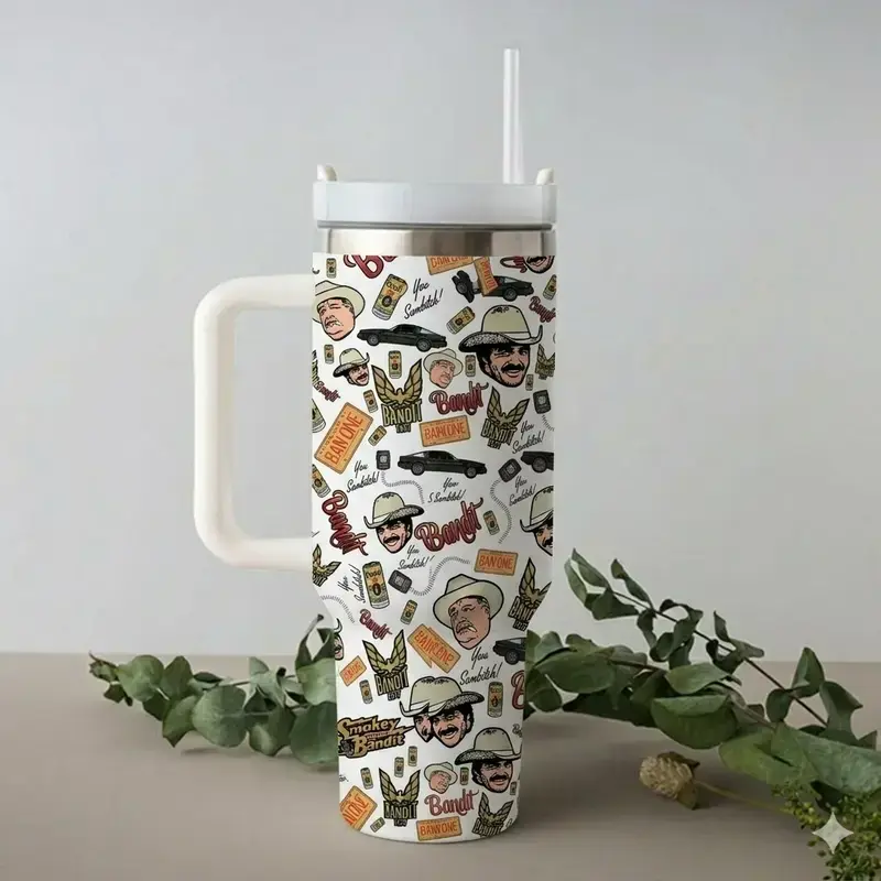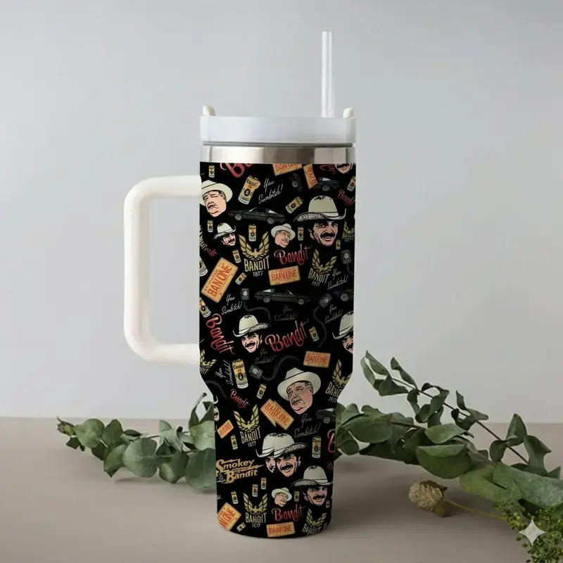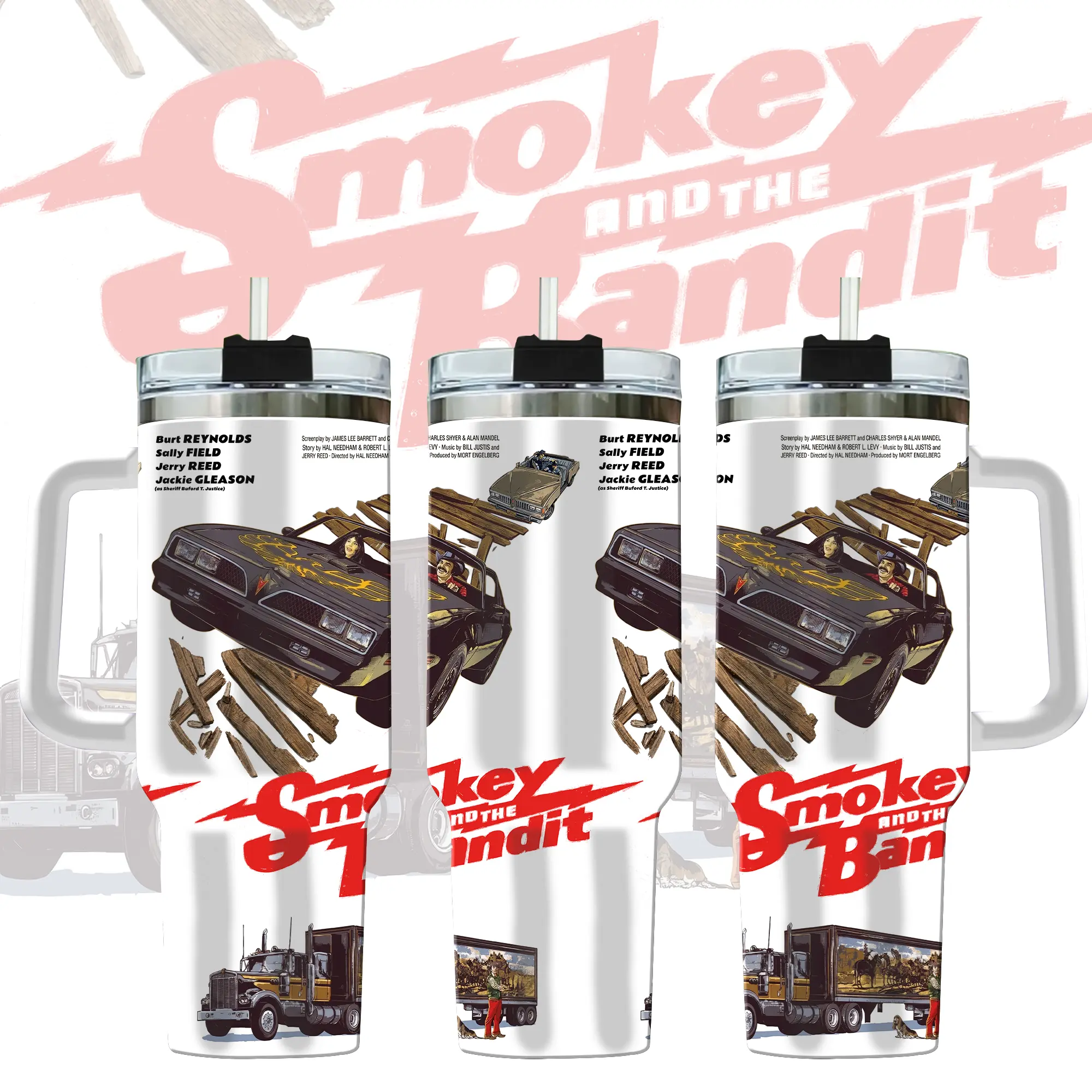 Smokey and The Bandit 40oz Tumbler, Burt Reynolds Sally Fields, Black Handle, Old Movie Gift, Gift For Dad.