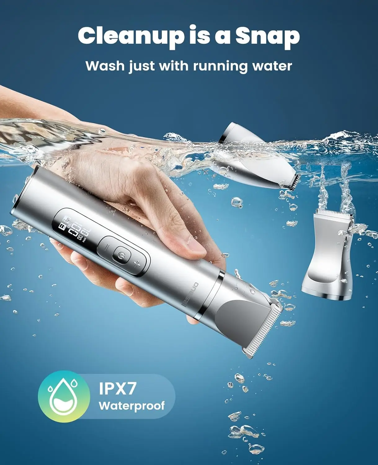4 in 1 Dog Grooming Kit with LCD Display, Dog Hair Trimmer & Nail Grinder, Rechargeable Cordless Low Noise Waterproof Pet Clippers