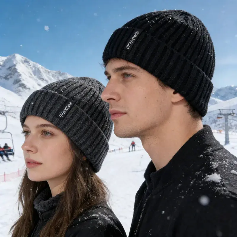 Hot Sale Premium Warm Winter Hat Stylish Plush Fur Lined Thick Cozy Beanie Hat Outdoor Casual Knitted Hats For Men & Women