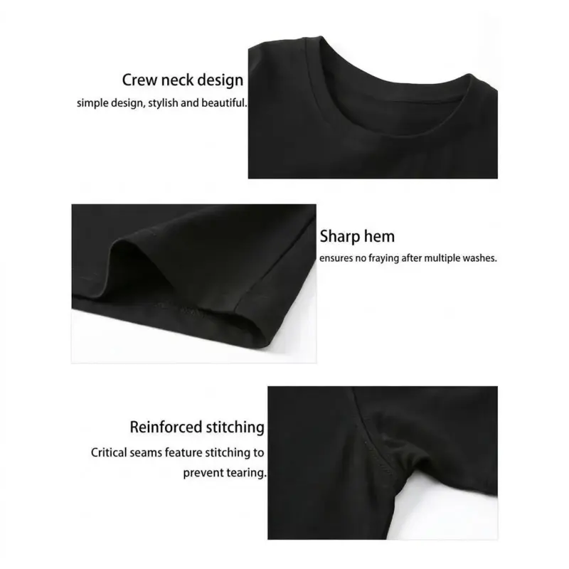 🖤Classic Black Cotton T-Shirt| Everyday Essential Meet the perfect black tee you’ll want to wear on repeat.Simple, clean, and always in style.Designed for comfort and effortless outfits, this basic piece belongs in every wardrobe.✨Key Features: 100% cotton fabric, soft, breathable and skin-friendly;high-quality cotton with thicker texture that is not see-through;classic round neck design for a timeless look;relaxed fit that flatters different body types;durable black color that stays rich after many washes;structured shoulder line that makes the outfit look sharper and more stylish.👗Easy to Style: pair it with jeans, skirts, or joggers for a casual street look, or layer it under jackets and hoodies in cooler seasons.📏Sizes available: S / M / L / XL / XXL / XXXL with a relaxed fit for everyday comfort.🎯Perfect for daily wear, street style, travel, work, or lounging. A must-have black T-shirt that is simple, versatile, and made for everyday comfort.