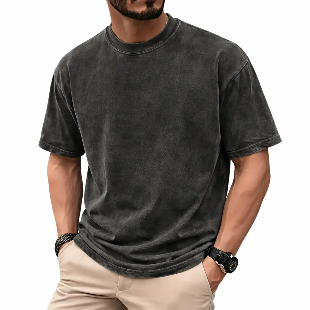 ·Acid Wash Crew Neck: Enhances the minimalist aesthetic.