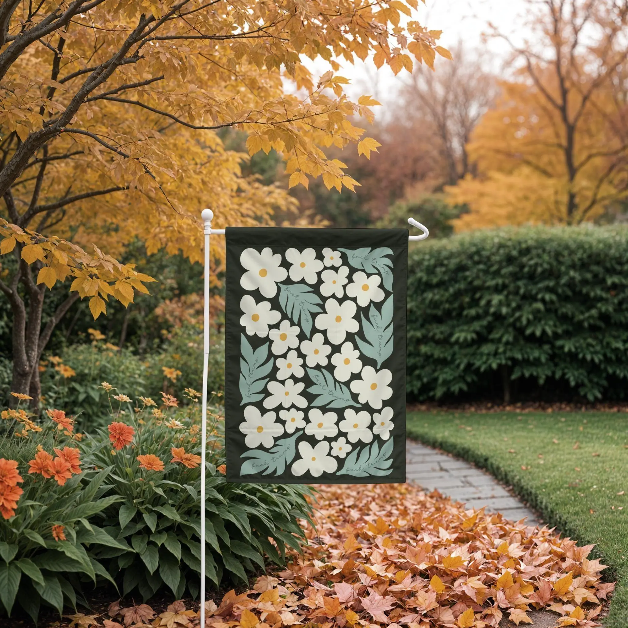 Retro Anti Tr^mp Garden Flag Groovy Fck Tr^mp Yard Decor Funny Sarcastic Political Banner Floral Liberal Gift Aesthetic Outdoor Sign