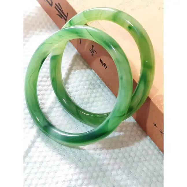 This bangle is made of high-clarity, smooth glass that expertly replicates the translucent texture and rich green hues of natural Tianshan green jade.The surface is meticulously polished to a glossy, mirror-like finish, delivering a cool, smooth touch that feels luxurious on the wrist.Unlike natural jade, our glass material is lightweight, scratch-resistant, and hypoallergenic, making it safe for sensitive skin and ideal for daily wear without the worry of damage or high maintenance.