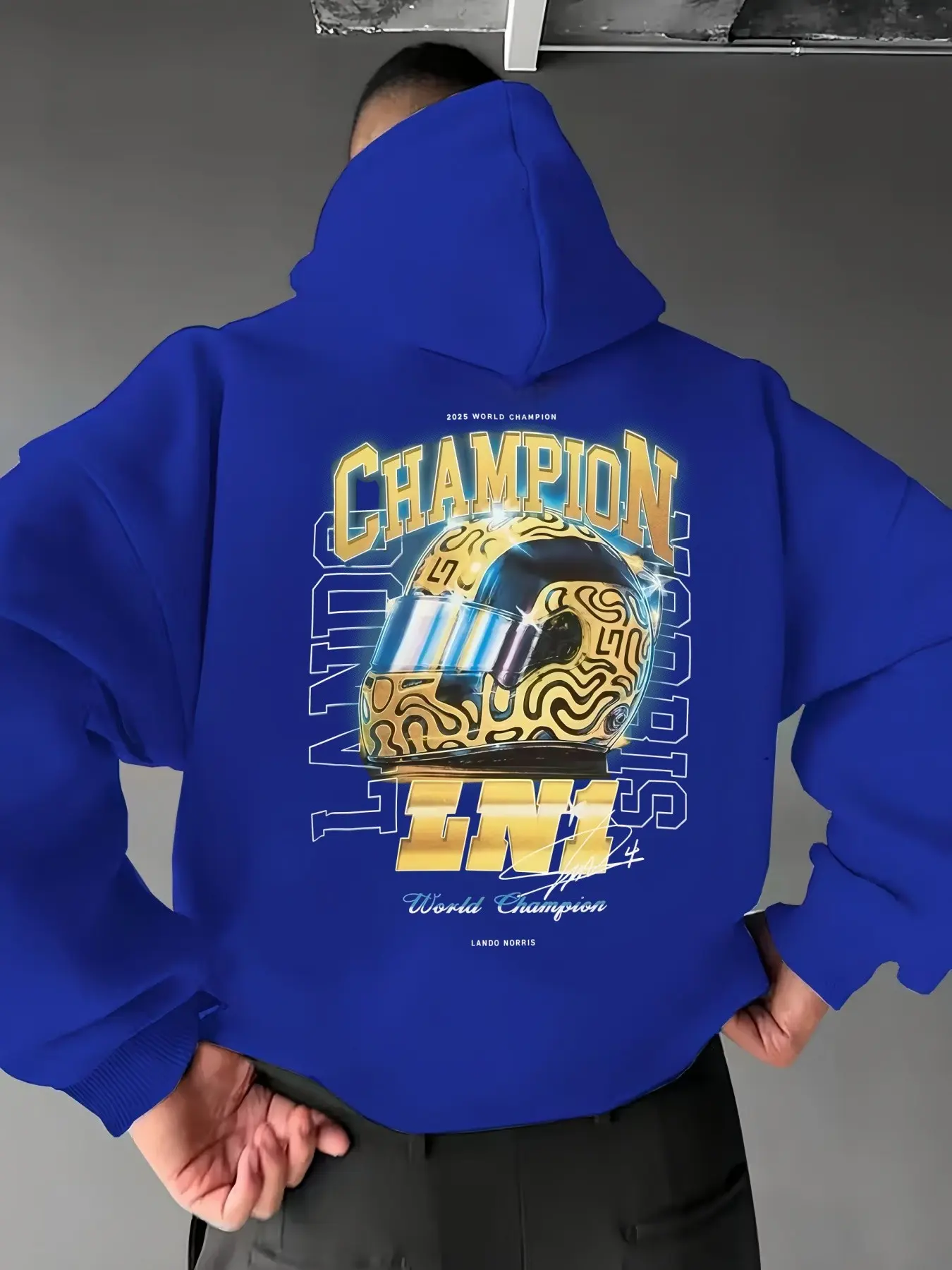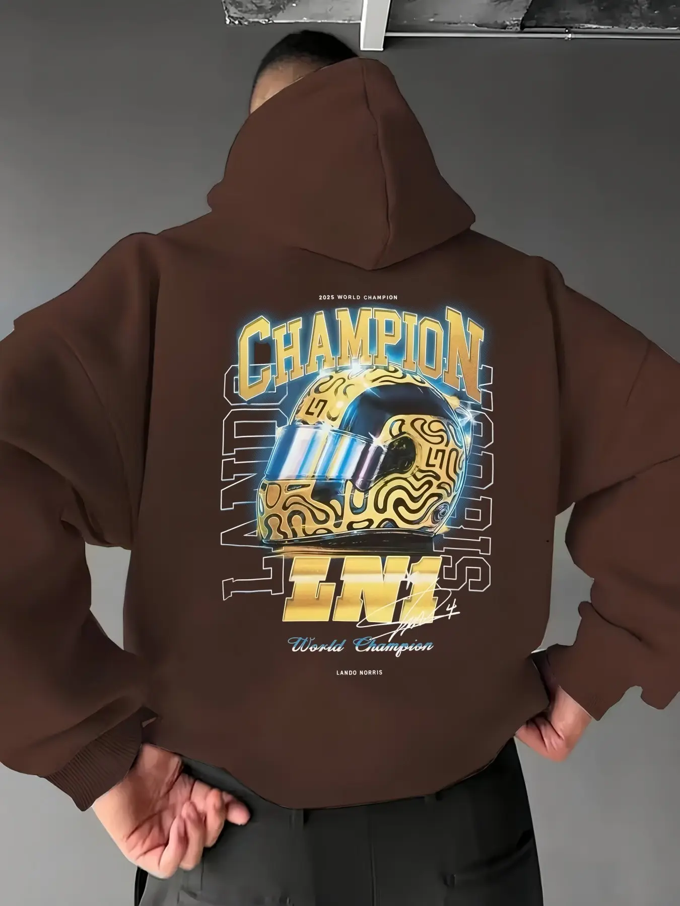 【World Champion Pride】: Celebrate Lando Norris's world championship status with this unisex hoodie featuring his iconic image.