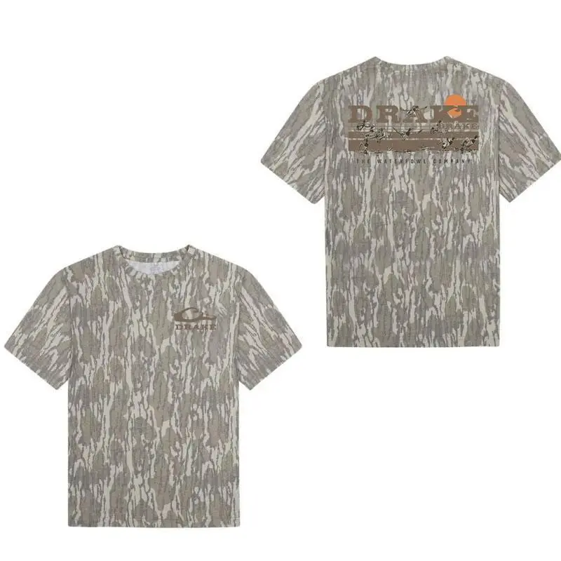 Drake Waterfowl Men's Old School Camo Square LabCamo T-Shirt Unisex Outdoor Tee in Bottomland Camo Ultra Soft Breathable Cotton for All Day Comfort Perfect for Hiking Camping Huntingg