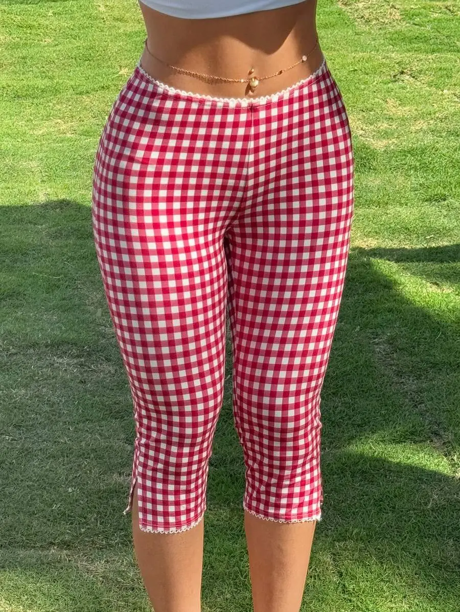 Lavish Lace Trim Plaid Shorts