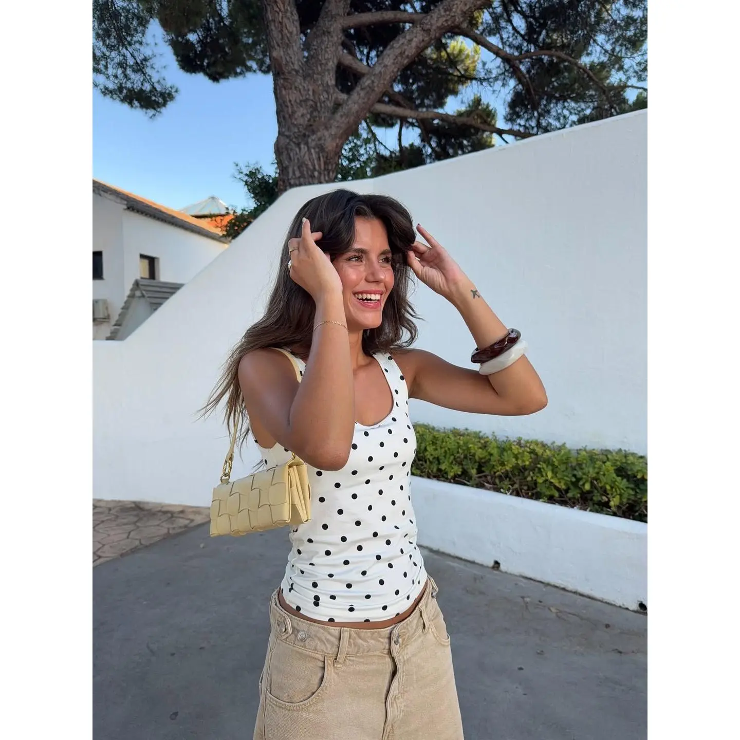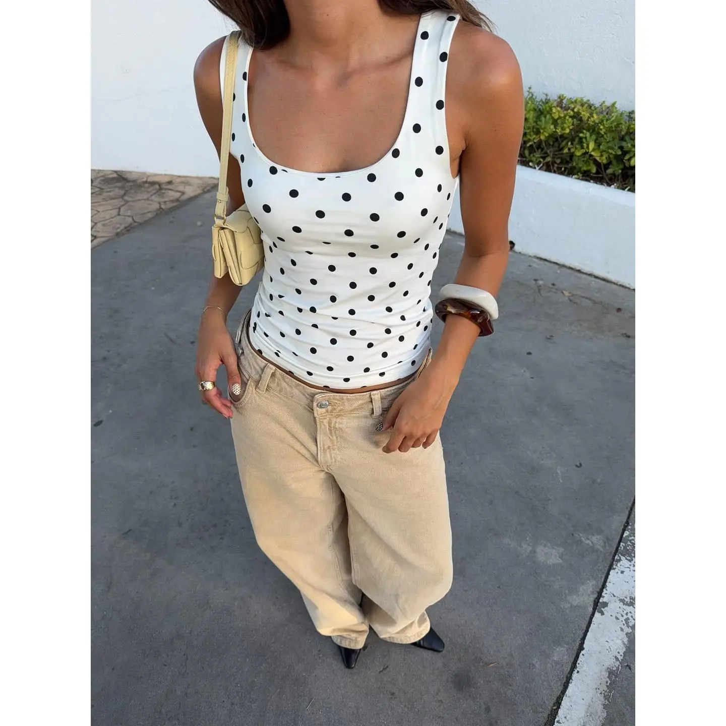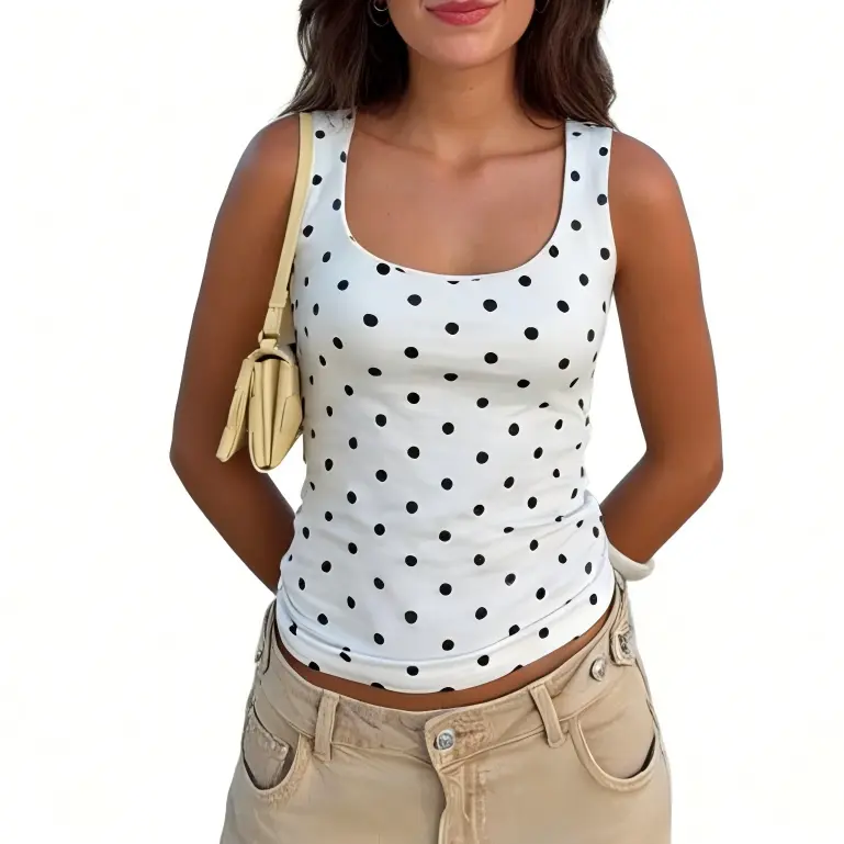 ·Match: Women polka dot tank top can be matched with jacket, jeans, wide-leg pants, pants, long skirt, mini skirt.