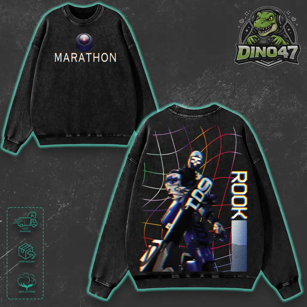 Rook Runner Marathon Game Double Side Graphic T-Shirt, Vintage Washed  Hoodie Sweatshirt Tank Top Unisex, Casual Crewneck 100% Cotton Tee, Menswear Gaming Merch